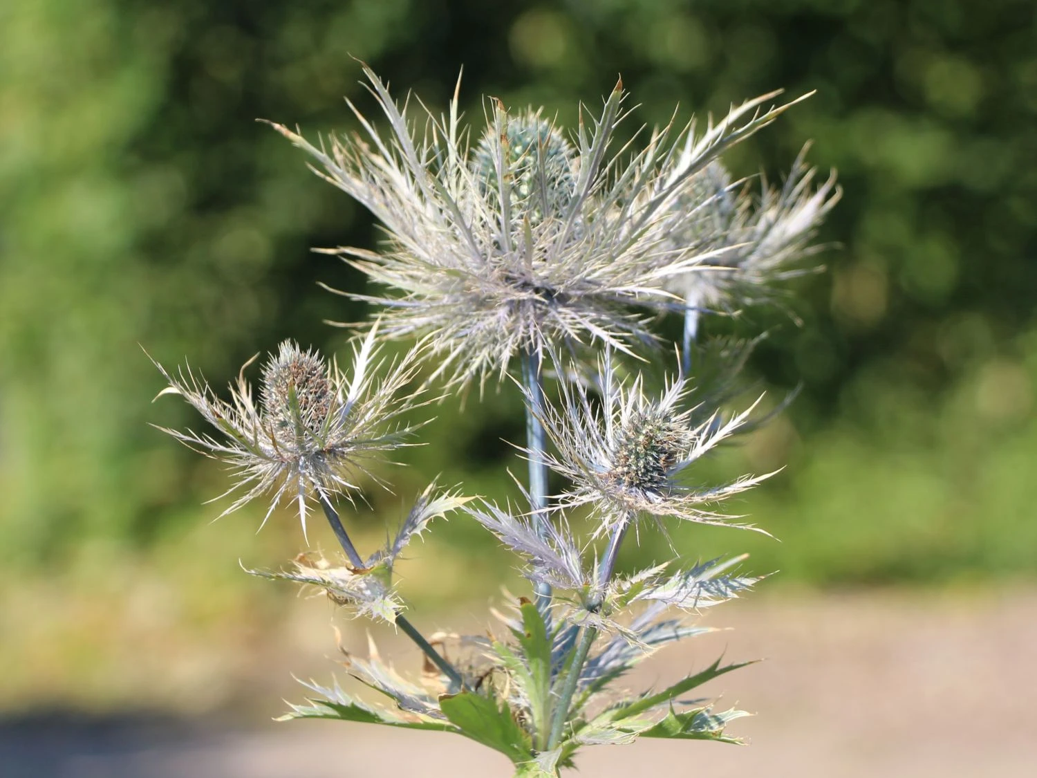 Die im dunklen Violett gehaltene Blüte springt dabei am Meisten ins Auge, wenngleich darüber hinaus auch der Kontrast zum vorhandenen dunklen Grün des Laubs edel wirkt und speziell während der Blütezeit von Juli bis August einen sehr schönen Anblick darstellen kann. Die Pflege hält sich bei der Mannstreu ‚Blue Star‘ Staude in Grenzen. Ihre Anpassungsfähigkeit beweist diese Pflanze bereits mit der Option auf kalkhaltigem Boden gepflanzt zu werden, wenngleich gerade vor dem Winter keine Arbeit anfällt und somit ebenso als Argument für sich spricht. Lediglich die abgeblühten Stängel sollten zurückgeschnitten werden, so dass Raum für neue Triebe besteht und die Mannstreu ‚Blue Star‘ überwintern kann. Dabei erfolgt übrigens im Herbst kein Rückschnitt, weshalb ein sehr schöner Winteraspekt rund um die Staude Mannstreu ‚Blue Star‘ hieraus entstehen kann.