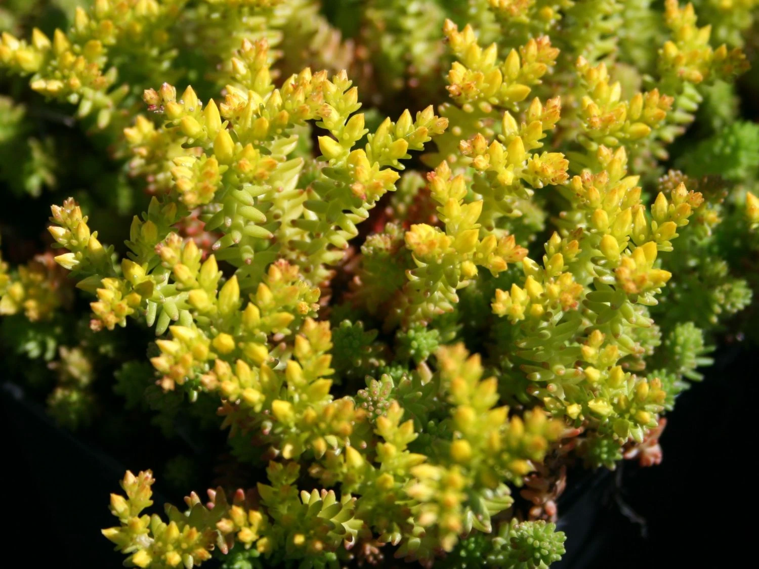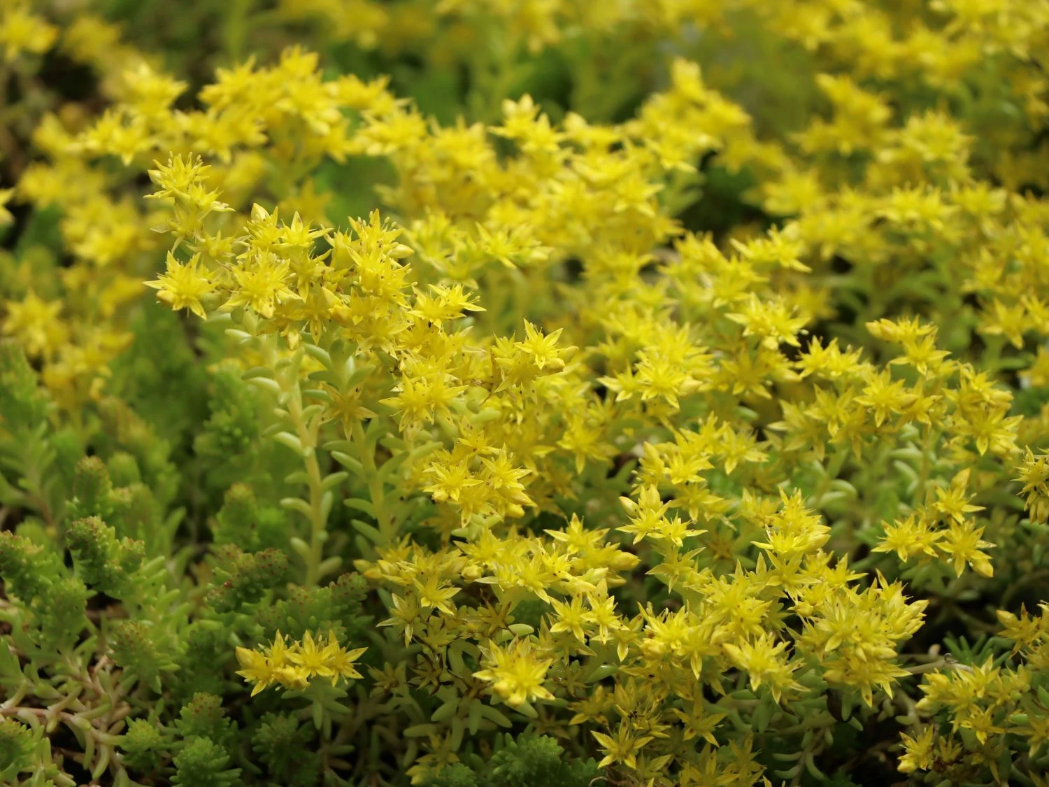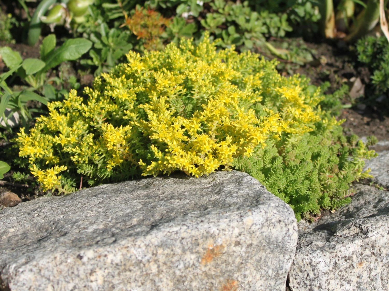 Der Milde Mauerpfeffer ist eine dankbare Pflanze mit zahllosen, prächtig gelben Blüten. Die Staude füllt anspruchslos und Aufhebens zu machen, größere Lücken. (Bot.) Sedum sexangulare ist eine beliebte Variante zum Bepflanzen von Dächern, da sie auch Fehler in der Pflege großmütig verzeiht. Der Milde Mauerpfeffer ist eine Art in der Gattung Sedum und zählt zur Familie der Dickblattgewächse. Wer den Geschmack der Pflanze testet, stellt schnell die angenehme Milde fest, die im Gegensatz zur Schärfe des Scharfen Mauerpfeffers steht. Geschmack ist mild und steht im Gegensatz zum sehr ähnlich aussehenden Scharfen Mauerpfeffer, der einen entsprechend scharfen Geschmack aufweist. Der Milde Mauerpfeffer, auch das deutet der Name an, fühlt sich in den Nischen und Spalten von Felsen wohl und besiedelt nicht selten auch loses Mauerwerk. Damit ist er geradezu prädestiniert für den Steingarten oder die bepflanzte Steinmauer. Da der Milde Mauerpfeffer so ausgesprochen anspruchslos ist und dabei noch lange Trockenperioden übersteht, ist die Pflanze auf Dachterrassen und selbst als Dachbegrünung von Flachdächern außerordentlich beliebt. Milder Mauerpfeffer ist eine sukkulente Staude und auch für das Bepflanzen von Blumentöpfen geeignet, wird dafür allerdings seltener verwendet. Stattdessen sind die sich polsterartig ausbreitenden Pflanzen als kissenbildende Bodendecker geschätzt. Die Ausbreitung erfolgt hauptsächlich über abbrechende Pflanzentriebe. Dabei nimmt Milder Mauerpfeffer nie überhand und breitet sich in seinem Wuchs nur langsam aus.