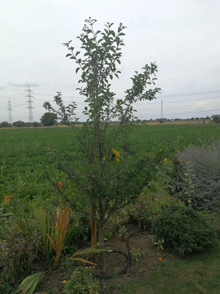 Beim Anpflanzen der ‚Doppelten Mirabelle‘ sollte beachtet werden, dass ihr genügend Platz zur Verfügung gestellt wird. Bei einer Gruppenpflanzung gilt es darauf zu achten, einen Abstand von mindestens 4 Metern zwischen den einzelnen Exemplaren einzuhalten, damit sie sich in ihrem Wuchs nicht gegenseitig behindern. Grundsätzlich kann das Pflanzen einer Containerpflanze ganzjährig erfolgen. Wichtige Voraussetzung ist allerdings, dass zu dieser Zeit kein Frost herrscht. Nachdem ein tiefes Erdloch ausgehoben wurde, wird die Erde darin etwas gelockert und der Wurzelballen wird in das Erdloch gesetzt. Beim Auffüllen mit Erde sollte beachtet werden, dass sich die Veredelungsstelle der Mirabelle frei über der Erde (etwa 5 bis 10 Zentimeter) befindet. Bei jungen Bäumen ist es ratsam, diese an einen Pfahl anzubinden, bis sie sich gut eingewurzelt und einen sicheren Halt verschafft haben.