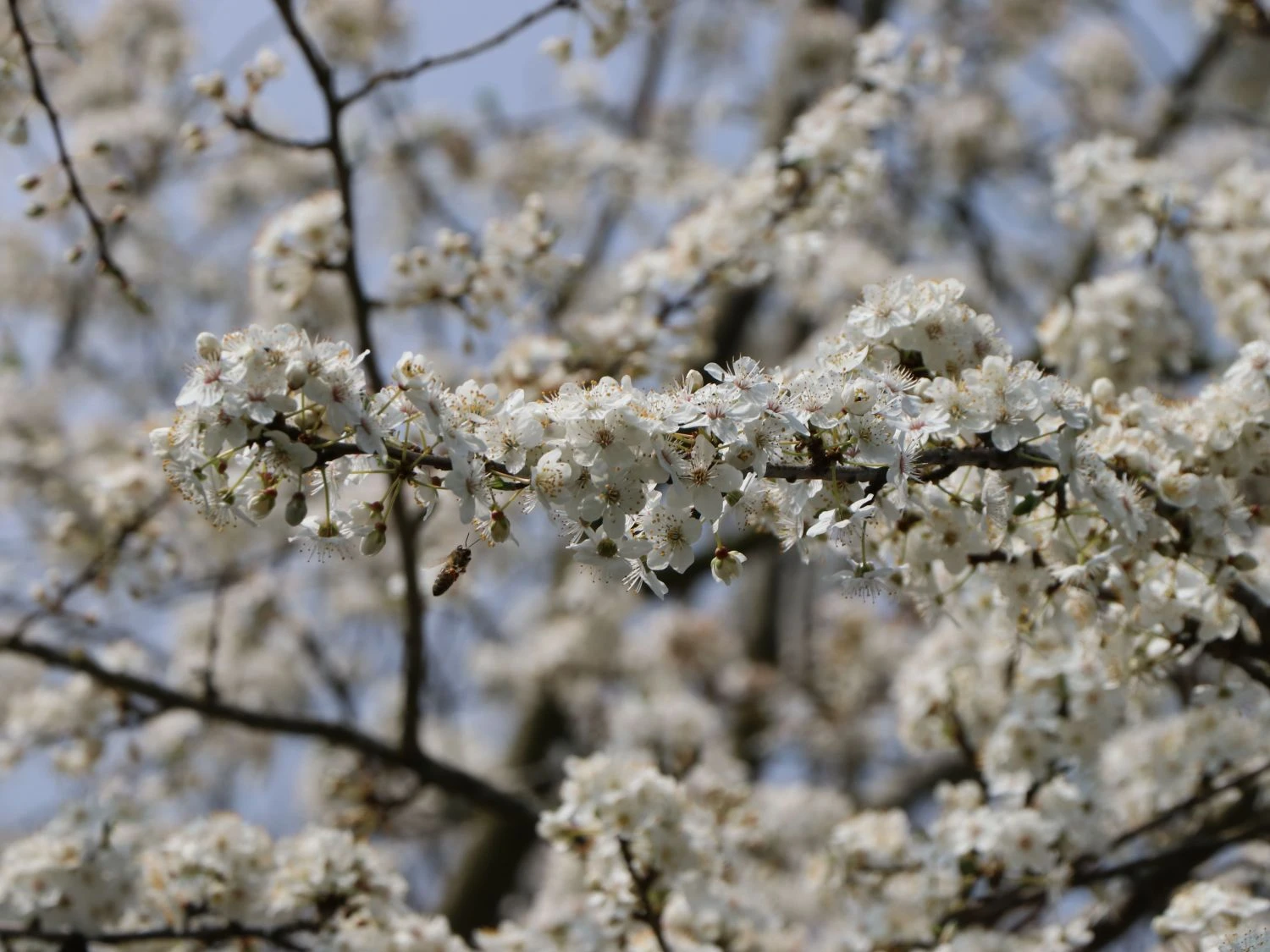 Bereits recht früh beginnt für die ‚Mirabelle von Nancy‘ die Blütezeit. Sie erstreckt sich zwischen Anfang April bis etwa Ende April. In dieser Zeit öffnen sich aus den bräunlich-rötlich gefärbten Knospen die kurz gestielten, schalenförmigen Blüten. Sie sitzen je zu zweit oder dritt in Büscheln zusammen und weisen 5 nicht miteinander verwachsene Kronblätter auf. Die Kronblätter haben eine reinweiße Farbgebung und die filigranen Staubfäden in der Mitte weisen eine hellgelbe Farbe auf. Die Blüten erscheinen so zahlreich, dass es wirkt, als sei die gesamte Krone von wattebauschartigen Schneeflocken übersät. Ein wahrlich einzigartiger und willkommener Anblick im April, wenn viele andere Gewächse noch längst nicht blühen.