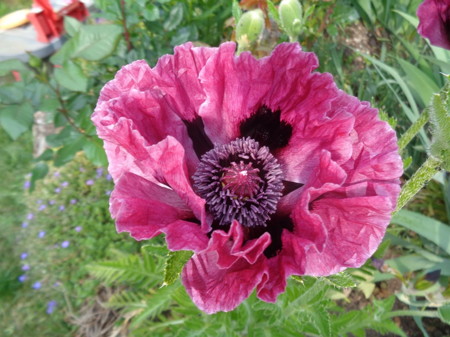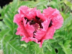 Der bevorzugte Standort des Orientalischen Mohns ‚Patty’s Plum‘ liegt im vollsonnigen Bereich. Ein trockener und durchlässiger Boden kommt den genügsamen Ansprüchen von Papaver orientale ‚Patty’s Plum‘ perfekt entgegen. Direkt im Anschluss an die Blüte zieht sich die Pflanze in den Boden zurück. Es entsteht der Eindruck eines leeren Beetes oder eines leeren Topfes. Aber keine Sorge, die Pflanze treibt erneut aus und die neuen Blätter lassen sich schon bald sehen. Der Orientalische Mohn ‚Patty’s Plum‘ zieht sich in seinen Wurzelstock zurück und sammelt die benötigte Kraft für den nächsten Austrieb im kommenden Frühjahr. ‚Patty’s Plum‘ stammt aus dem Jahre 1995 und war ein Findling auf einem Komposthaufen. Der Name der Pflanze bezieht sich auf die Eigentümerin der Kingsdon Nursery in Somerton, Somerset Patricia Marrow. Die außergewöhnliche Blütenfarbe sprach sich schnell herum und so ist diese Sorte seit langem eine beliebte Berühmtheit. Der Orientalische Mohn ‚Patty’s Plum‘ ist eine beliebte Schnittblume, glänzt in Stein- oder Bauerngärten, eignet sich einzeln und in Gruppen und ist eine großartige Nahrungsquelle für Bienen.