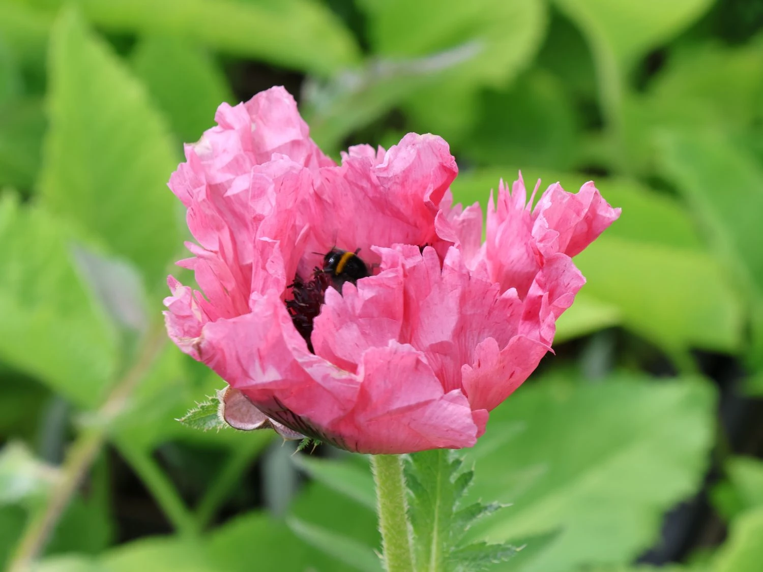 Der Orientalische Mohn ‚Patty’s Plum‘ räumt mit dem alten Klischee auf, dass Mohnblüten rot sein müssen. Diese schöne Sorte zeigt sich absolut einzigartig und begeistert mit den ausdrucksstarken Blüten in schönstem Violett. Mit (bot.) Papaver orientale ‚Patty’s Plum‘ entstehen im Beet schönste Arrangements und auch die altbekannten rotblühenden Mohnsorten sind schöne Pflanzpartner. Die purpurvioletten Schalenblüten des Orientalischen Mohns ‚Patty’s Plum‘ erschienen in Mai. Sie erreichen einen Durchmesser von 5 bis 10 cm und verströmen einen starken Duft. Von Farbe und Duft angelockt, lassen sich Bienen und Hummeln nicht lange bitten. Sie sind häufig gesehene Gäste auf den nektarreichen Blüten, die bis in den Juni hinein präsent sind. Daneben bietet das mittelgrüne, lanzettlich geformte und an den Rändern gesägte Laub einen schönen Kontrast.