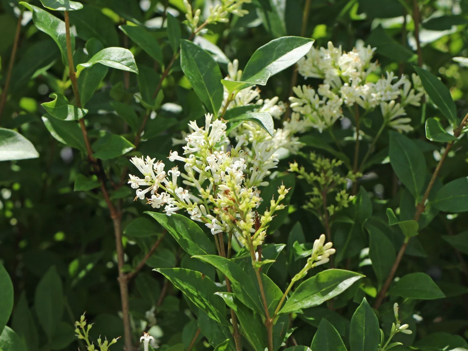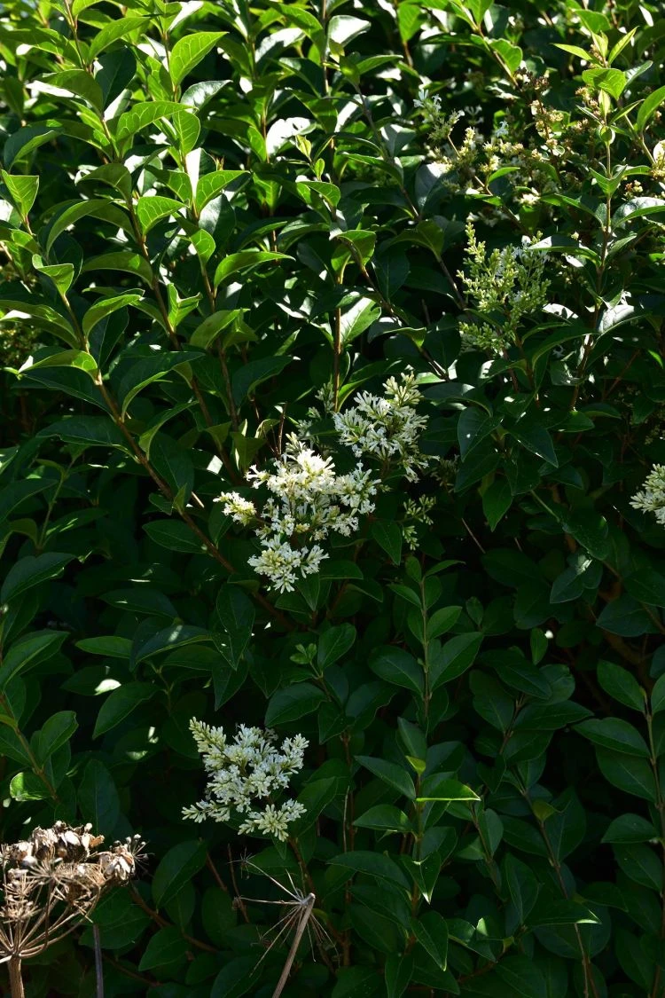 Dieser blühende Strauch ist hervorragend für Imker. Um einen fleißigen Flug der Bienen zu unterstützen, ist ein geplanter Rückschnitt der Hecke nach der Blüte vorzunehmen. Bei dem Wunsch nach einer robusten und schnell wachsenden Hecke, ist dieser Liguster die beste Wahl. Bis zu sechs Zentimeter werden die Blätter des Ligusters lang. Sie sind elliptisch geformt und in ihrer Farbe dunkelgrün. Im Alter wird der Ligustrum ovalifolium bis zu drei Meter hoch. Auch kräftige Rückschnitte bis ins alte Holz verträgt er gut.