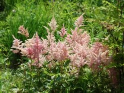 Die Prachtspiere ‚Europa‘ ist in den warmen Monaten des Sommers ein blühendes Feuerwerk. (Bot.) Astilbe japonica ‚Europa‘ erblüht in den ersten Junitagen in voller Pracht. Bis zum Ende des Monats Juli gedeiht sie unablässig und verbreitet mit ihrem Charme Glanz und Anmut. Dunkelgrüne, farnartig gesägte Blätter umrahmen das zart leuchtende Rosa ihrer rispenförmig, aufrecht wachsenden Blütenstände und bilden einen kräftigen und beeindruckenden Kontrast. Wie kleine Flammen wiegen sich die eleganten Blüten im Wind. Das feingliedrige Laub, es erscheint beim Austrieb rötlich-grün, später in dunklem Grün, glänzt als neckischer Gegenpol zum berauschenden Farbenspiel wundervoller Blütenblätter. Astilbe japonica ‚Europa‘ ist ein liebevoller Gruß des Sommers. Dekorativ, anpassungsfähig und robust gewinnt Astilbe japonica ‚Europa‘ das Herz des Pflanzenliebhabers. Der geringe Pflegeaufwand der aparten Pflanze ist legendär. Wo sich wenige Stauden gesund entfalten, wächst Astilbe japonica ‚Europa‘ ohne Mühe und zusätzliche Pflege zu ausgeprägter Pracht heran. Buschig und ausladend wächst die Japanische Prachtspiere bis zu 50 Zentimeter in die Höhe. Im Halbschatten und unter Bäumen fühlt sich die Prachtspiere ‚Europa‘ am wohlsten und entwickelt ihre eleganten Blüten ohne Unterlass. Dabei bevorzugt sie frische bis feuchte, durchlässige Böden, die reich an Humus und Nährstoffen sind. Um sich zu entwickeln, braucht sie ausreichende Mengen an Nahrung. Organischer Dünger oder ein Langzeitdünger für blühende Pflanzen ist optimal. Auch Kompost nimmt sie gern. Die beste Zeit für eine kräftige Gabe zusätzlicher Nährstoffe ist der April.