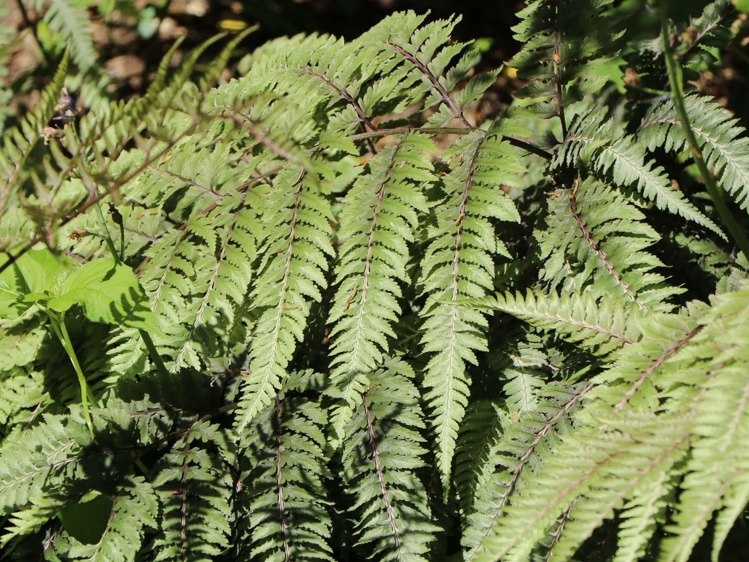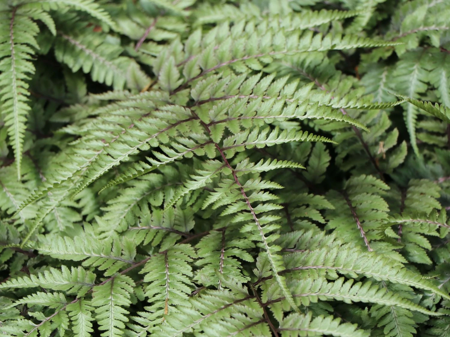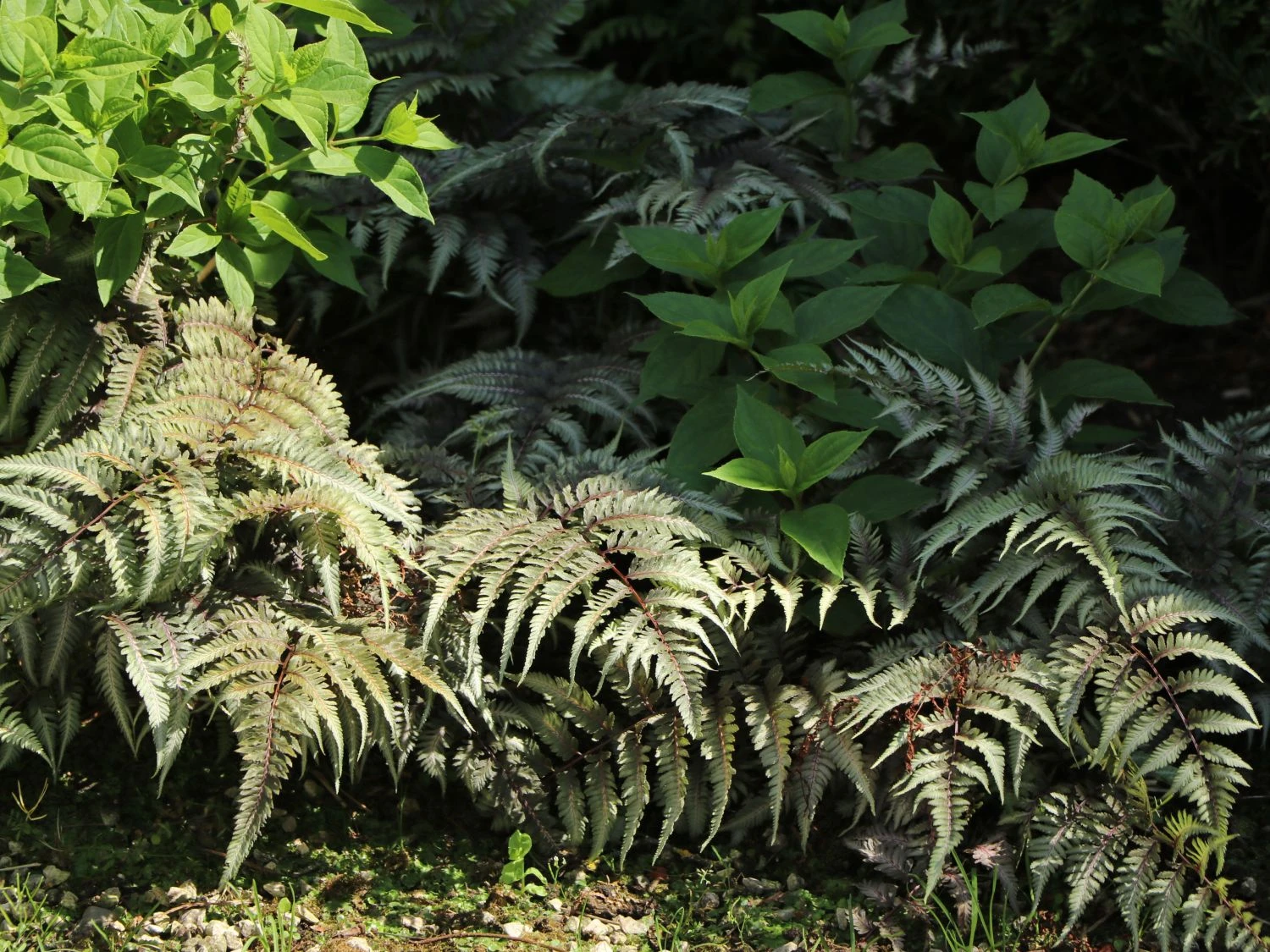 Die filigran geformten und mit 10 bis 15 cm sehr breiten Wedel von Athyrium niponicum ‚Burgundy Lace‘ sind stabil und sehr stark. Wind und Witterungsumschwünge können diesem wundervollen Farn nichts anhaben. Die Pflanze liebt einen schattigen bis halbschattigen Standort. Ideal wächst der Regenbogenfarn / Brokatfarn ‚Burgundy Lace‘ in einem humusreichen und frischen Boden mit einem pH-Wert im sauren Bereich. Dieser Regenbogenfarn entfaltet seine Blattwedel auf eine Wuchshöhe von 30 bis 40 cm und nimmt bis zu 50 cm in der Breite ein. Zur Überwinterung ist keine besondere Handhabung notwendig. Die Staude zieht sich in ihre unterirdischen Rhizome zurück und treibt im kommenden Frühjahr zuverlässig aus. Der Athyrium niponicum ‚Burgundy Lace‘ etabliert sich im Garten sehr schnell und schmückt ein großes Areal mit seinen bunten Blättern. Wer pflegeleichte und anspruchslose Pflanzen mit hoher Wirkung bevorzugt, ist vom Regenbogenfarn / Brokatfarn ‚Burgundy Lace‘ mehr als begeistert. An einem gut gewählten Standort ist fast keine Pflege nötig. An trockenen Tagen hilft der Gartenbesitzer, mit der Gießkanne für die notwendige Bodenfeuchte zu sorgen.