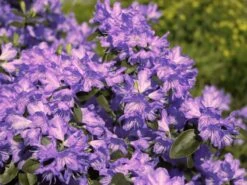 Der Rhododendron ‚Azurwolke‘ schmückt sich ab Mai mit seinen herrlichen Blüten in schönstem Blauviolett. Die trichterförmigen Blüten locken viele Hummeln an, die sich von den Blüten angelockt fühlen und gerne den enthaltenen Nektar sammeln. Dieser sehenswerte Kleinstrauch ist immergrün und die lanzettlich geformten Blätter sind dunkelgrün stehen in einem schönen Kontrast zur Blüte. Am besten steht (bot.) Rhododendron russatum ‚Azurwolke‘ an einem halbschattig bis schattig gelegenen Standort. Der ideale Boden ist humos und kalkfrei. Mit seinem lockeren und strauchartigen Wuchs entwickelt sich der Rhododendron ‚Azurwolke‘ auf eine Höhe von etwa 70 bis 80 cm sowie auf rund 100 bis 120 cm im Durchmesser.