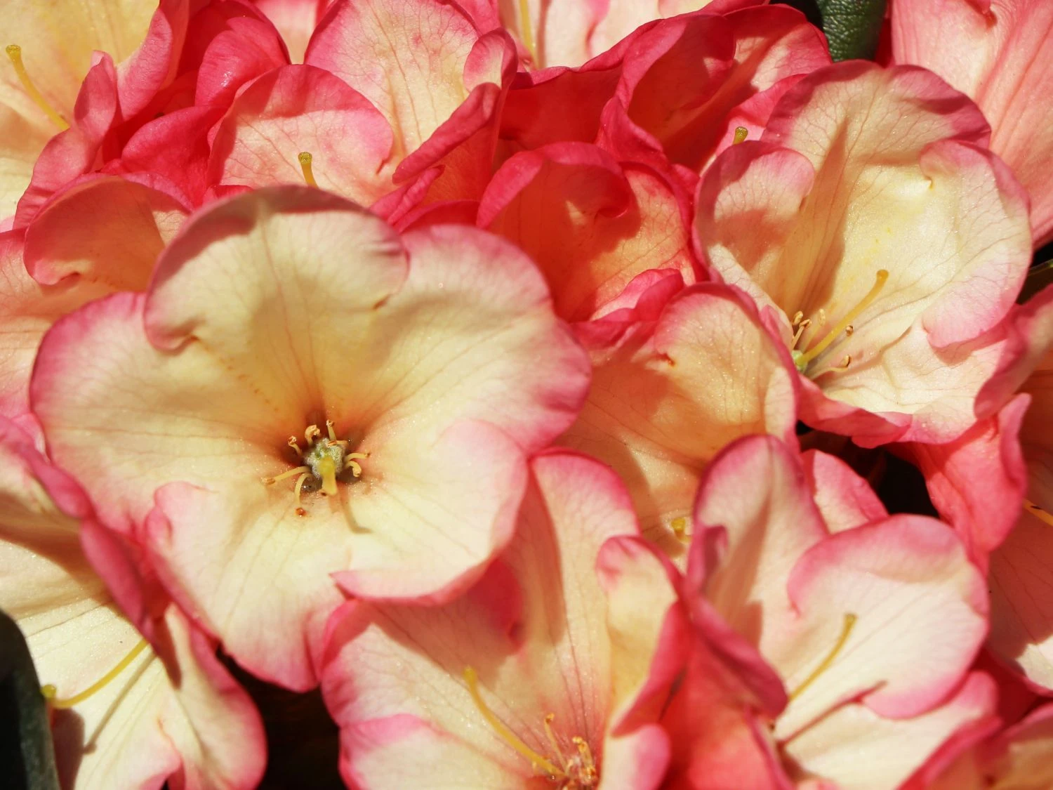 Ein wunderbares Farbenspiel in herrlich leuchtenden Farben hat der Rhododendron ‚Barbarella‘ parat. Seine Blüten in Glockenform sind außen und an den Säumen orangerot mit rosa Hauch. Vom Innern der Blüte schließt sich Gelb dem Farbentanz an. Diese Sorte ist reich blühend, auch schon als junge Pflanze.