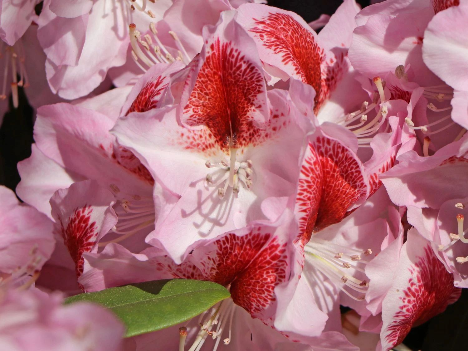 Der Rhododendron ‚Belami‘ ® zeichnet sich durch seine auffällige Blütenpracht aus. Von Mitte Mai bis Anfang Juni bezaubert er mit großen, rosig-weißen Blüten. Die auffällige, großflächige, rote Zeichnung macht den Flor besonders attraktiv. Die Blütensäume von (bot.) Rhododendron Hybride ‚Belami‘ ® sind leicht gewellt. Die tiefgrüne, elliptische Belaubung des Rhododendron ‚Belami‘ ® untermalt die schöne Blüte sehr wirkungsvoll. Bienen und Insekten finden in ihm einen guten Nektar- und Pollenspender.