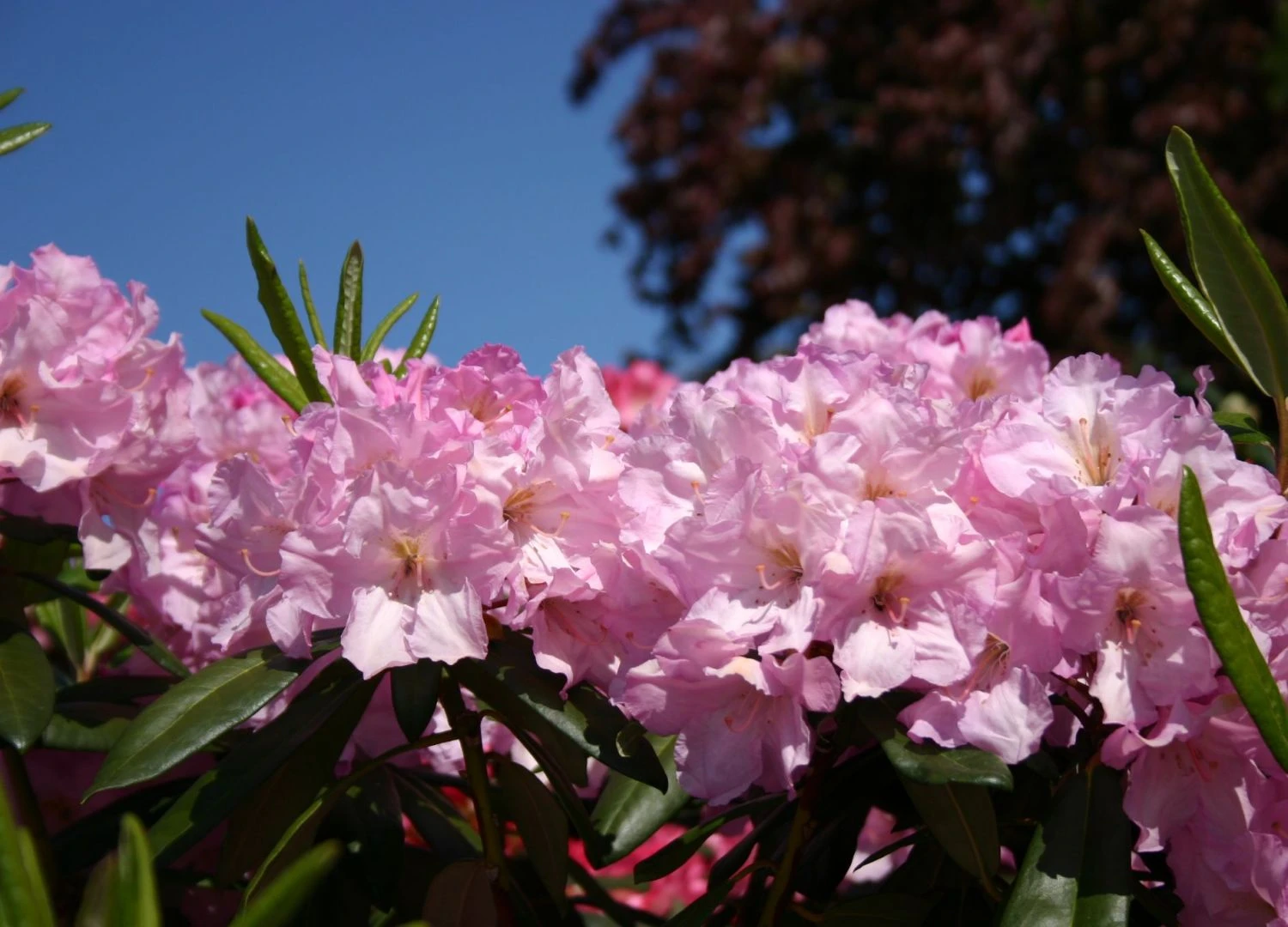Der Rhododendron ‚Bellefontaine‘ ist nicht nur durch seine bestechende Farbgebung ein echter Hingucker! Auf den Blütenstutzen sitzen bis zu 12 rubinrosa Blüten, die innen zartrosa mit lila Tönung ausgestattet sind. Die Blüten lassen ihre Umgebung leicht süßlich duften, die Belaubung ist glänzend tiefgrün.