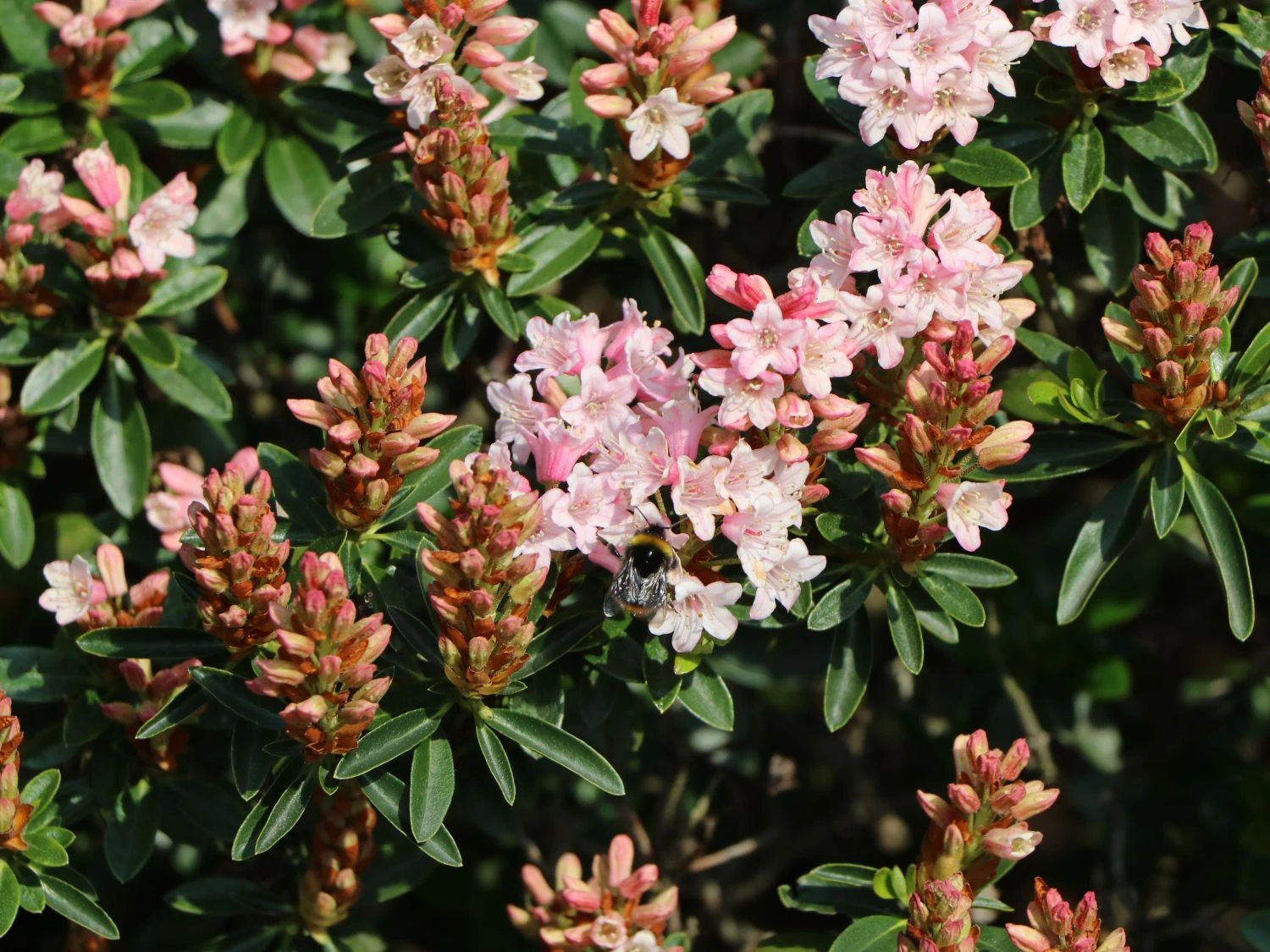 Mit dem Rhododendron ‚Bloombux‘ ® ist ein Kunstwerk kreiert worden, mit welchem die Gartengestaltung einen immergrünen, gut schnittverträglichen und zart rosa bis pink blühenden Gesellen dazugewonnen hat. Er ist die Alternative zum Buchsbaum und übertrifft diesen bei Weitem. Der Rhododendron micranthum ‚Bloombux‘ ® ist mit seinen Blüten eine Augenweide und setzt alles, was sich in seiner Nähe befindet, gekonnt in Szene. Ein rosafarbener Traum, der auch ohne Blüten überzeugt und entzückt. Mit seinem dichten und kompakten Wuchs ist die exklusive Züchtung eine gute Alternative zum Buchsbaum. Der Rhododendron ist absolut schnittverträglich und winterhart. Sein Laub ähnelt dem des Buchsbaums und zeichnet sich durch eine gute Blattgesundheit aus. Die kleinen und spitz zulaufenden Blätter haben beim Austrieb im Frühling eine herrlich frischgrüne Farbe. Im ausgereiften Zustand verfärben sie sich in ein angenehmes Grün. Besonders herausstechend ist dieses wunderschöne Laub im Juni, denn zu diesem Zeitpunkt schmückt den ‚Bloombux‘ ® eine üppige Blütenpracht. Zahlreich erscheinen die kleinen, rosafarbenen bis pinken Blüten, die dicht beieinander wachsen. Sie erzeugen in der Gesamtheit ein traumhaftes und beeindruckendes Blütenmeer. Bereits jüngere Pflanzen zeigen sich stark in der Blüte.