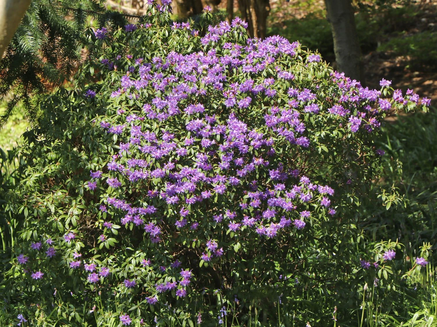 Der Rhododendron ‚Blue Tit Magor‘ öffnet seine reiche Blütenpracht Anfang Mai. Die trichterförmigen Blüten erstrahlen bis Ende Mai in einem intensiven Farbton zwischen Hellila und einem kräftigen Blau. Die mittelgroßen, einfarbigen Blüten erreichen einen Durchmesser von 5 – 10 cm. Die breit-ovalen, ledrigen Blätter des Rho(bot.) dodendron impeditum ‚Blue Tit Magor‘ treiben in einem attraktiven Blaugrün aus. Später nimmt das immergrüne Laub des Rhododendrons ‚Blue Tit Magor‘ eine grau- bis dunkelgrüne Farbe an. Der leuchtende Flor setzt sich kontrastreich davon ab. Nach der Blüte bildet sich ein Fruchtschmuck in Form von Fruchtkapseln aus.