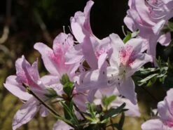 Das immergrüne Blattkleid ziert den Strauch ganzjährig und ist ein prächtiger Akzent im Garten. Bei Rhododendron Hybride ‚Blueshine Girl‘ beeindruckt der Austrieb junger Zweige und Blattstängel. Dieser zeigt sich in den ersten Wochen intensiv violett bis purpurn. Sehr zur Freude des Gärtners, sind die Blätter gesund und wenig anfällig. Die Wuchsform des Zierstrauches ist gefällig und er zeigt sich breitrund. Mittelstark wächst er auf eine Breite von 120 bis 160 cm und eine Höhe von einem bis 1,4 Meter. Nach circa zehn Jahren hat Rhododendron ‚Blueshine Girl‘ rund 140 cm im Durchmesser und circa 120 cm Wuchshöhe erreicht. Der Strauch ist gut verzweigt und durch das dichte Laub wirkt er kompakt. Ein zauberhafter Anblick, der einzeln prächtig wirkt. In einer Gruppe mehrerer Rhododendren nimmt sich ‚Blueshine Girl‘ apart aus. Die cremeweißen Blüten harmonieren mit jeder andersfarbig blühenden Sorte. Auch lassen sich Kombinationen mit weiteren Moorbeetpflanzen wie Azaleen realisieren. Herrlich wirken Lorbeerrosen oder Schattenglöckchen als Pflanzpartner. Ein solches Arrangement ist exquisit und ein seltener Blickfang. Wichtig für diesen Rhododendron ist ein Gartenboden mit leicht saurem bis saurem pH-Wert. Beim Anpflanzen greift der Gärtner idealerweise auf spezielle Rhododendron-Erde zurück, mit der er das großzügig ausgehobene Pflanzloch auffüllt. Er achtet darauf, dass der Rhododendron ‚Blueshine Girl‘ ein Flachwurzler ist. Also hebt er die Pflanzstelle in der Breite circa zwei- bis dreimal breiter als den Wurzelballen aus. Nach dem Pflanzen ist ein sorgsames Wässern unumgänglich. Auch später muss der Boden stets frisch bis feucht sein. Im Winter benötigt diese Rhododendron-Sorte keinen besonderen Schutz. Sie ist bis zu Temperaturen von circa -24 Grad Celsius ausreichend winterhart.