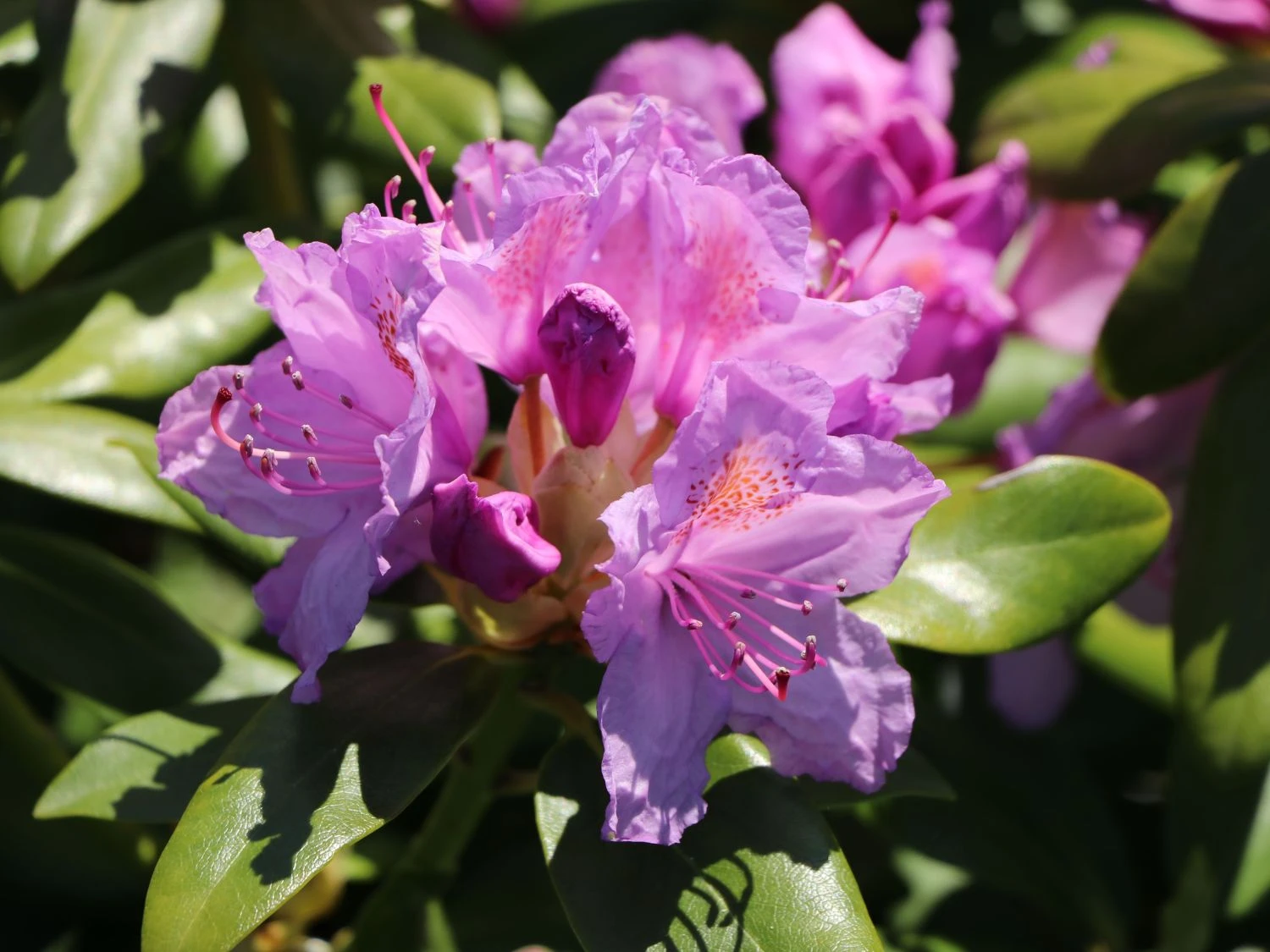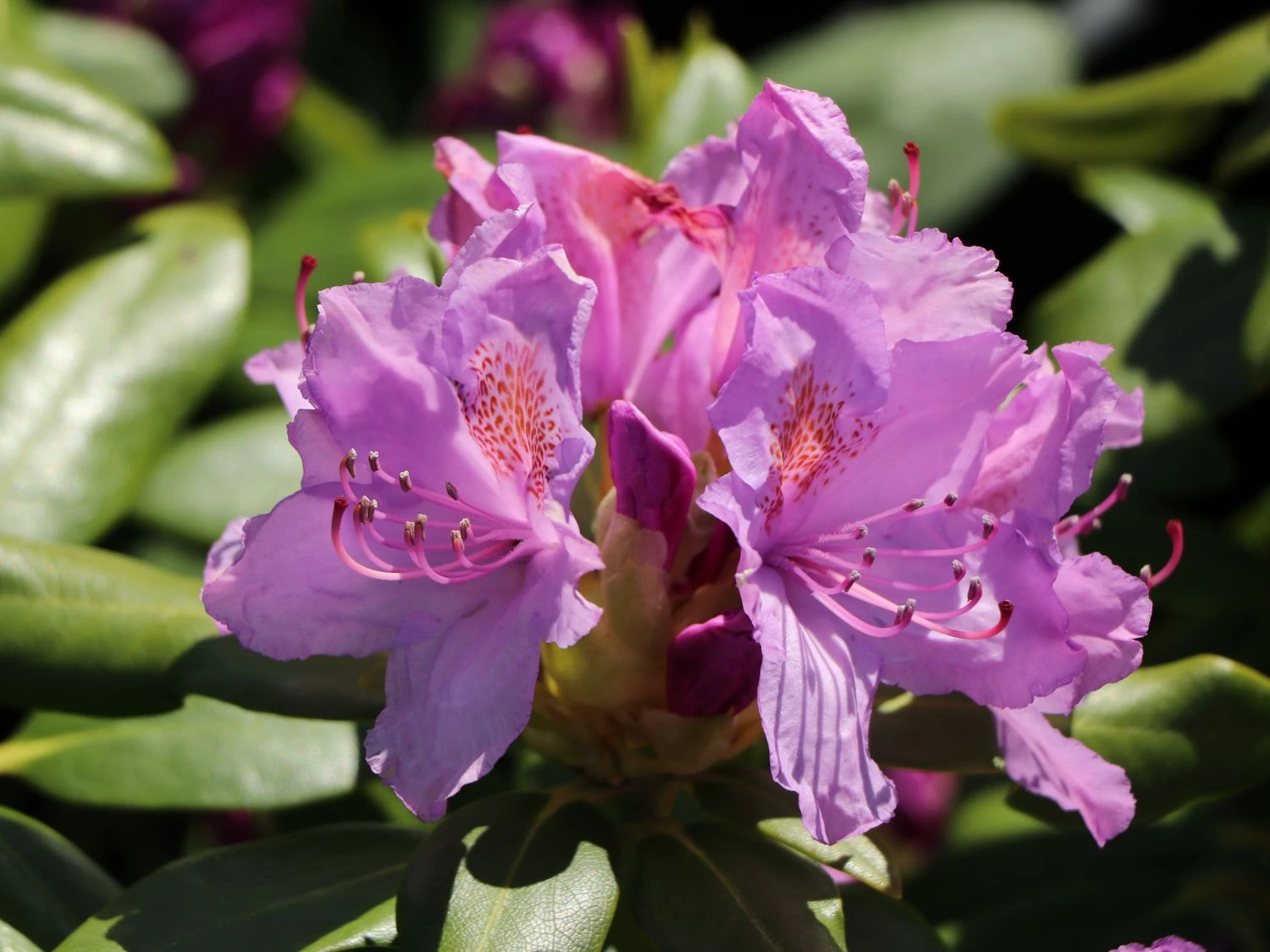 Der Rhododendron ‚Catawbiense Grandiflorum‘ fasziniert durch seine buschige kugelförmige Wuchsform. In der Blütezeit von Ende Mai bis Mitte Juni ist der Strauch über und über mit helllila Blüten bedeckt. Die trichterförmigen Einzelblüten bilden eine Ballenform, was die Blütenstände extrem voluminös und üppig erscheinen lässt. Die schmalen, leicht gewölbten und spitz zulaufenden Laubblätter sind tief dunkelgrün und auf der Oberseite glänzend. Auch im Winter behalten sie ihre Farbe und verbleiben am Strauch. Der (bot.) Rhododendron Hybride ‚Catawbiense Grandiflorum‘ ist wie seine Verwandten immergrün und benötigt einen sauren, lockeren Boden. Am sonnigen bis halbschattigen Standort fühlt sich der Strauch am wohlsten und entfaltet seine Blütenpracht. Beim Rhododendron ‚Catawbiense Grandiflorum‘ handelt es sich um eine langsam wachsende Sorte, die weniger in die Höhe und mehr in die Breite wächst. Sie vergrößert sich jährlich zwischen zehn und 20 Zentimetern. Auf Kalk reagiert Rhododendron Hybride ‚Catawbiense Grandiflorum‘ empfindlich. Daher nutzt der Gärtner am besten Regenwasser zum Gießen. Kalkhaltiges Leitungswasser schädigt die Blüten und das Laub der Pflanze, wodurch es zum Gelbfärben der Blätter und zu schwachen abfallenden Blüten kommen kann. Ebenso ist es wichtig, Staunässe zu vermeiden. Regelmäßig und dafür nicht zu stark gießt der Rhododendron-Liebhaber. In der Blütezeit benötigt der Rhododendron ‚Catawbiense Grandiflorum‘ viel Wasser. Die beste Zeit zum Gießen liegt in den Abendstunden.