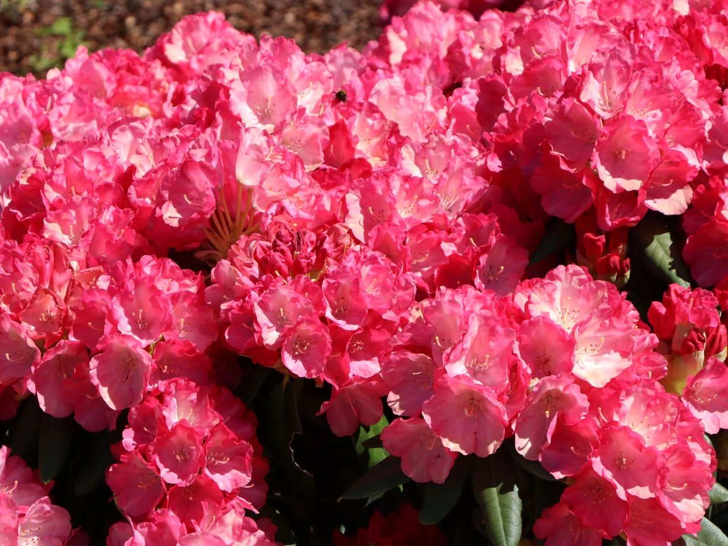 Der Rhododendron ‚Fantastica‘ gehört zu den schönsten rosarot blühenden Sorten. Geduld ist zunächst angesagt, denn der Zierstrauch blüht spät. Er zeigt sich von Ende Mai bis Anfang Juni in fantastischer Blütenpracht. Der (bot.) Rhododendron yakushimanum ‚Fantastica‘ bildet in dieser Zeit große rosarote Blütenbälle. Di e Blüten sind innen fast reinweiß und bieten ein großartiges Farbspiel. Die Blütenbüschel bestehen aus bis zu 18 Einzelblüten mit fantastischer Farbbrillanz. Diese kommt vor den dunkelgrünen Laubblättern besonders schön zum Ausdruck. Die Blätter sind länglich-eiförmig, ledrig und glänzend. Der Rhododendron wächst aufrecht, dicht und kompakt. Er erreicht eine Wuchshöhe von 100 bis 140 cm und eine ebensolche Breite. ‚Fantastica‘ ist eine Augenweide, ein fantastisch leuchtender Blickfang. Der immergrüne Strauch ist ein praktischer Sichtschutz und lässt sich vielseitig in Gärten, Vorgärten oder Parkanlagen einsetzen. Ob als Solitär oder als Hecke zusammen mit andersfarbig blühenden Rhododendren, ‚Fantastica‘ ist stets ein Highlight. Auch im Pflanzkübel macht er eine gute Figur und schmückt blütenreich Terrasse oder Balkon. Auch auf Friedhöfen, in Innenhöfen oder in Dachgärten setzt der rosarot blühende Rhododendron magische Akzente.