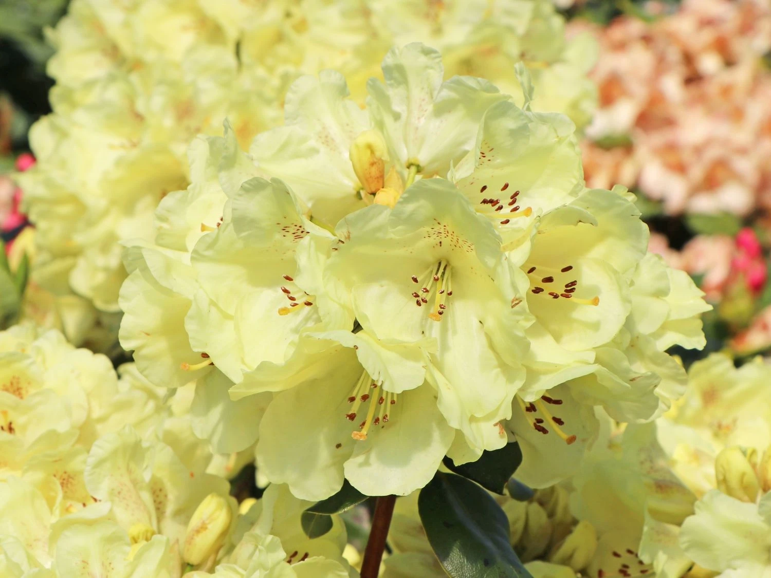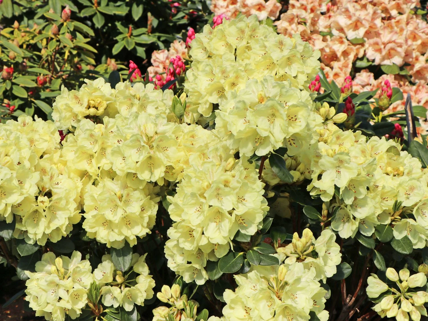 Rhododendron ‚Goldkrone‘ ist keine Schattenpflanze. Deshalb versteht er sich gut mit solchen Begleitern, die ihm an seinem Standort ausreichendes Licht gönnen. Am besten sind tief wurzelnde Gehölze, die seinen flachen Wurzeln in der obersten Bodenschicht nicht in die Quere kommen. Die beste Pflanzzeit für die Rhododendron Hybride ‚Goldkrone‘ liegt zwischen März und Mai und von September bis November. Dieser Liebling des Rhododendron-Fans fühlt sich im Beet und im Kübel gut aufgehoben. Er liebt gleichmäßig hohe Boden- und Luftfeuchte. Beim Bewässern ist auf kalkfreies Wasser zu achten. Regenwasser ist ideal, damit der Boden ausreichend sauer bleibt. Ein Rückschnitt ist bei Rhododendron ‚Goldkrone‘ nicht notwendig. Wunderschöne Pflanzpartner findet er im Frühjahr während seiner Blüte mit der Schlüsselblume, Vergissmeinnicht und Veilchen. Später treten Akelei, Tränendes Herz und Salomonssiegel mit ihrem dezenten Blütenzierrat in glänzend neben ihm auf. Spätestens Anfang Herbst wirft die Pflanze ihre Goldkronen ab. Ab jetzt glänzt sie in natürlichem Grün und lässt sich von ihren Begleitern ergänzen. Schöne Nachbarschaften entstehen mit dem Wald-Scheinmohn, der Himmelsleiter, Astilbe und Herbstanemone. Sein schönes immergrünes Blattwerk bildet ein harmonisches Ensemble mit verschiedenen Farnen und Gräsern.