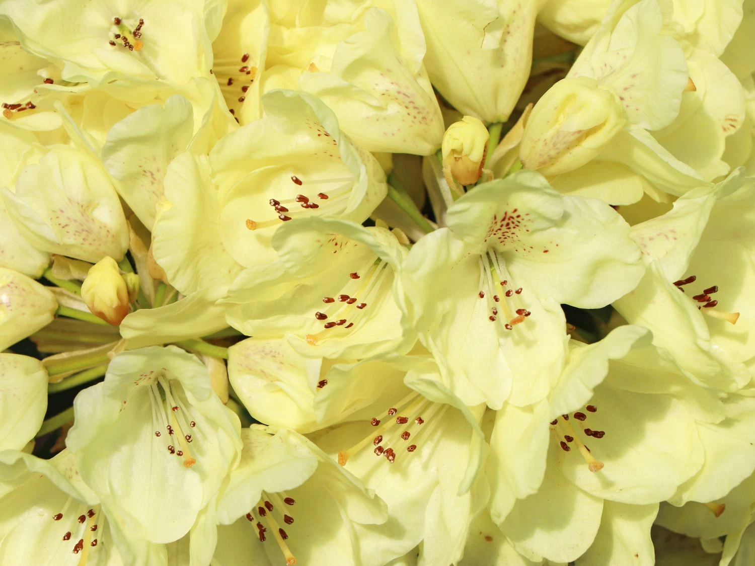Sie bezaubert im Wonnemonat Mai das wintermüde Auge des Betrachters. Beim Rhododendron ‚Goldkrone‘ ist der Name Programm. Er trägt goldene Kronen aus neun bis 15 edlen Einzelblüten. Beim Näherkommen überraschen die satt gelb gefärbten Blütentrichter mit zitronengelbem Schlund. Wie ein Schönheitsfleck wirkt der winzige rotbräunliche Basalfleck auf dem oberen Kronblatt jeder Blüte. Mit dieser Zeichnung setzt (bot.) Rhododendron Hybride ‚Goldkrone‘ weitere entzückende Akzente. Schon als junge Pflanze blüht er unglaublich reich. Attraktiv ist das ganzjährige frischgrüne Laub in Form von kleinen rundlichen Blättern. Seine extreme Winterhärte macht den Strauch in der kalten Jahreszeit zu einem grünen Farbtupfer in der kahlen Landschaft. Bis zu -24°C verträgt die Pflanze ohne Probleme.