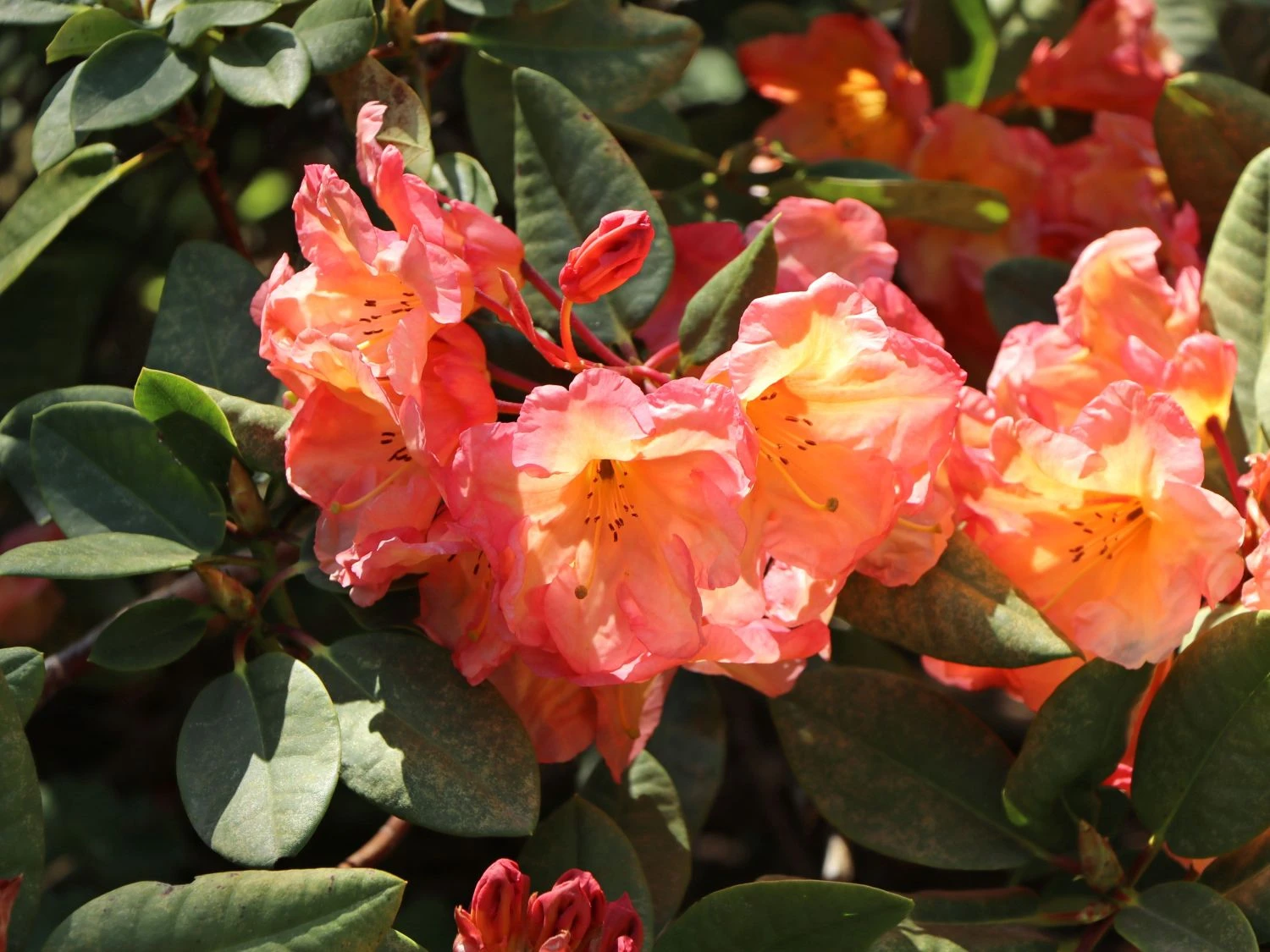 Der Rhododendron ‚Macarena‘ beweist auf charmante Art und Weise, wie herrlich ein zartes Farbenspiel wirken kann. Im Innern zeigt sich eine tief gelborange Farbe, die von rosaroten, leicht gewellten Säumen eingefasst wird.