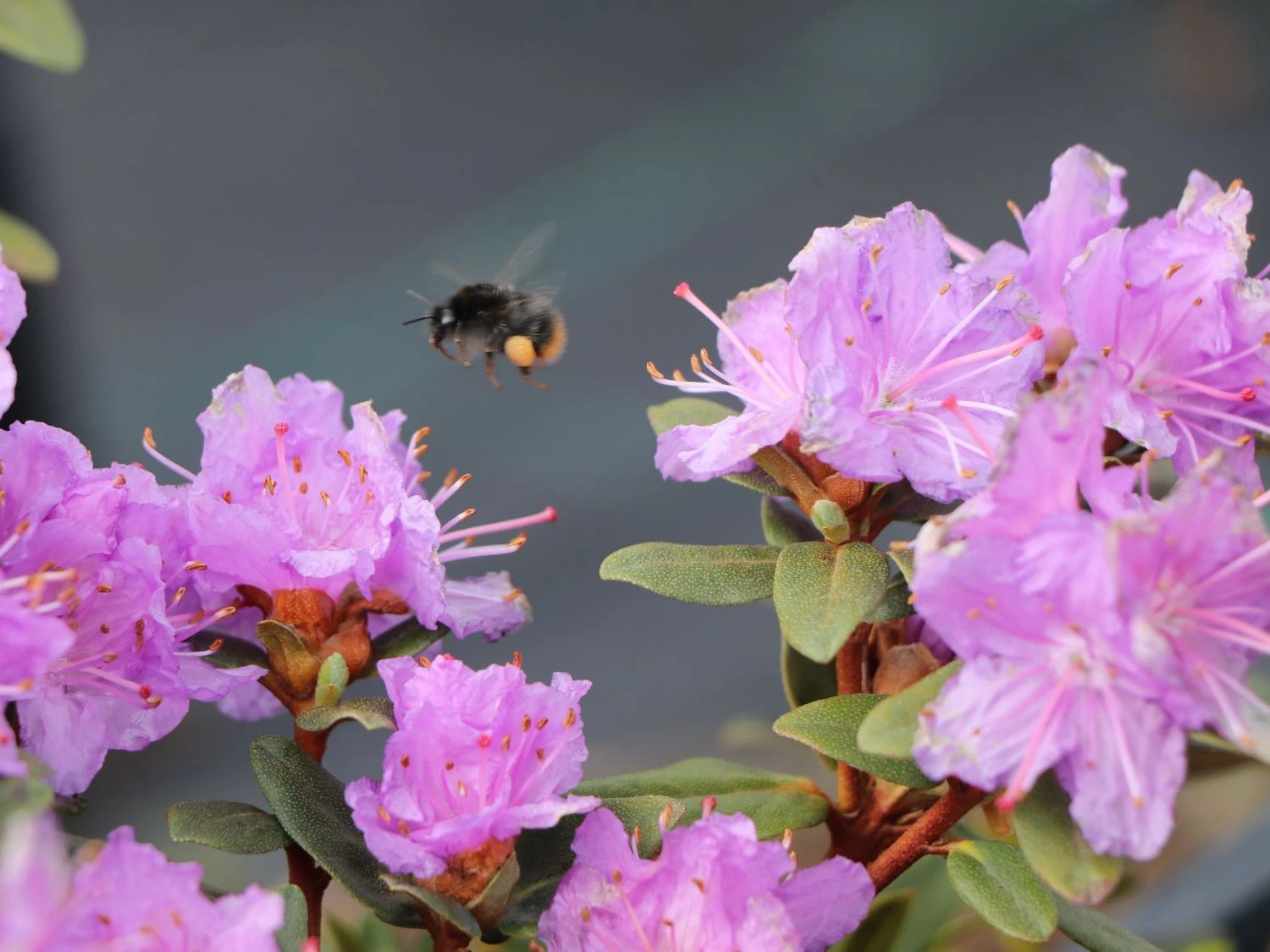 Rhododendron ‚Ramapo‘ – Neben den hell-lilafarbenen Blüten mit der rosanen Tönung macht dieser Rhododendron seine Belaubung zu etwas Besonderem. Die Blätter sind nämlich auf der Ober- und der Unterseite dicht beschuppt und duften würzig.
