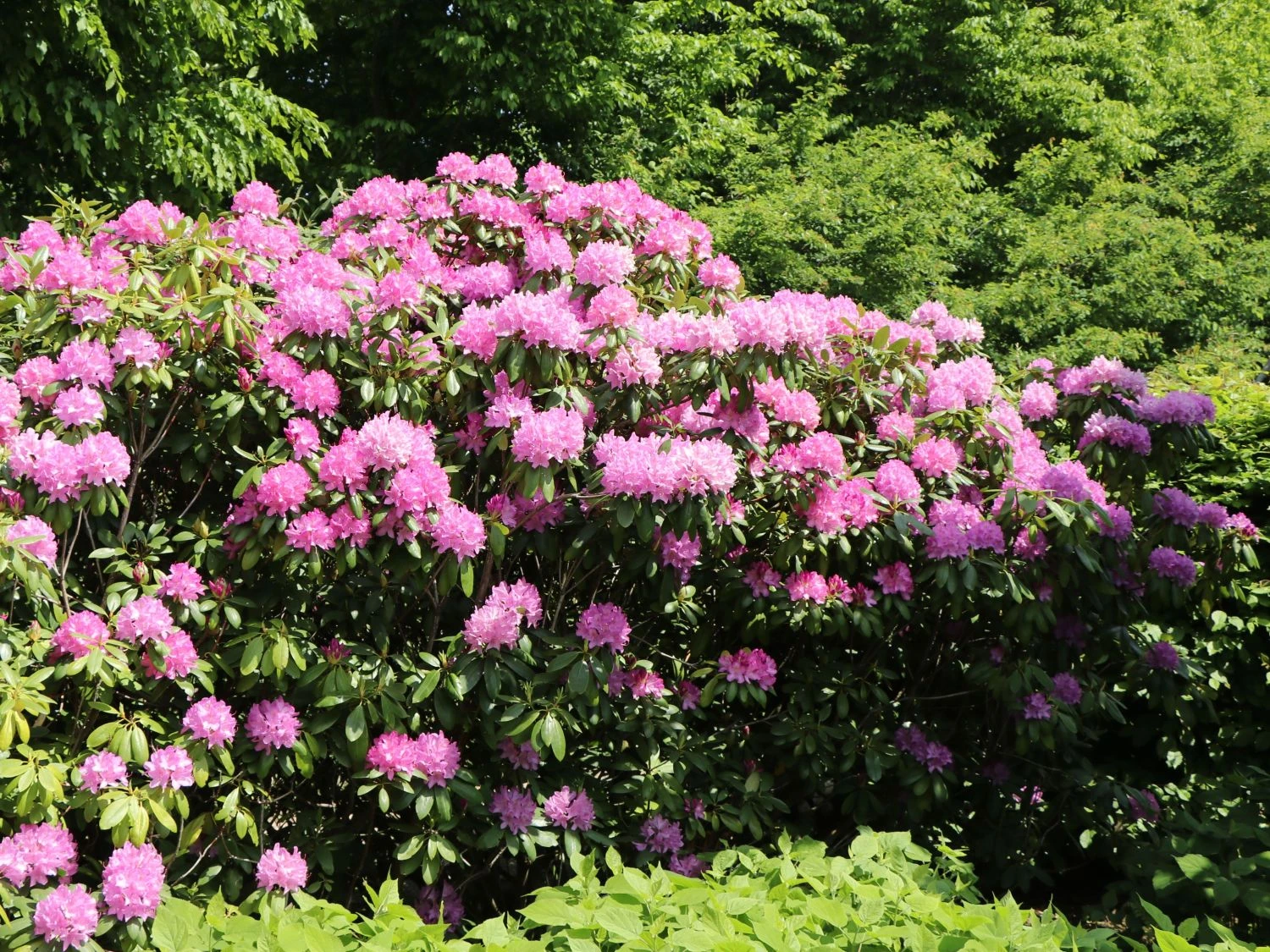 Der Rhododendron ‚Roseum Elegans‘ ist eine Sorte der herrlich großblumigen Rhododendron-Hybriden. Im Frühsommer beginnt die Zeit der wunderschönen Blüte und die Blütenbüschel erscheinen in einem anmutigen Purpurrosa. Die trompetenartigen Einzelblüten setzen sich zu großen Blütenbällen zusammen. Blütengehölze wie (bot.) Rhododendron Hybride ‚Roseum Elegans‘ sind sehr robust und extrem winterhart. Um allerdings für viele Jahre Freude an dem zierenden Gehölz zu haben, ist es wichtig für einen humosen, kalkarmen und somit eher sauren Boden zu sorgen. In der Zeit von Ende Mai bis Mitte Juni lassen sich die unzähligen Blüten des Rhododendrons ‚Roseum Elegans‘ bewundern und bestaunen.