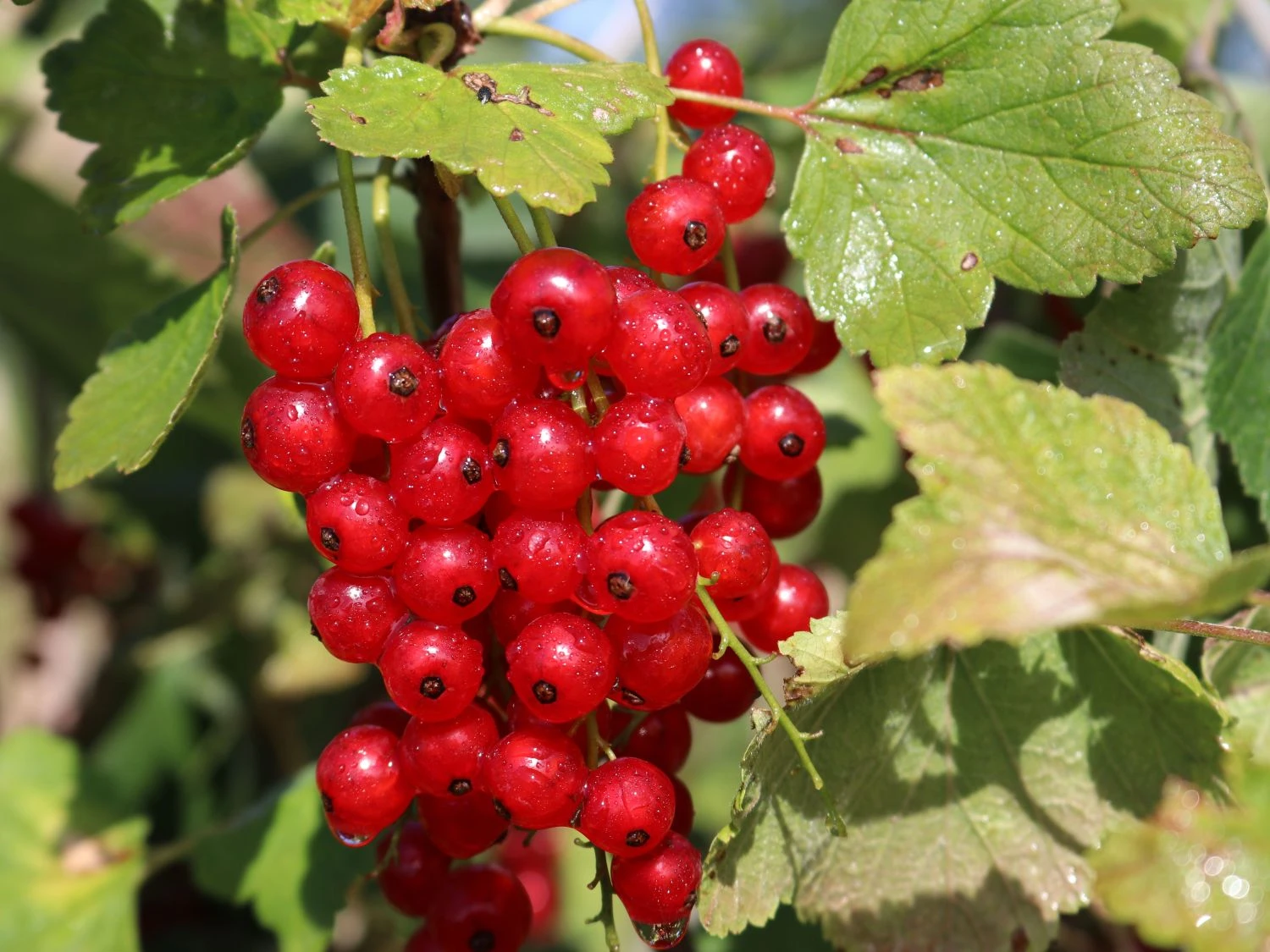 Die Beeren entwickeln sich aus den winzigen, gelbgrünlichen Blüten der Roten Johannisbeere ‚Rovada‘, die sich von Mai bis Juni zeigen. Sie sind unscheinbar und fallen durch das Laubwerk der Pflanze wenig auf. Die Blätter besitzen eine dunkelgrüne Farbe, sind bis zu zehn Zentimetern groß und rund. Der Rand ist gekerbt und die Oberfläche glänzend. Die drei- bis fünflappigen Blätter fallen zum Herbst. Die Pflanze ist frosthart und übersteht den Winter mit kleinen Maßnahmen problemlos. Empfehlenswert ist es, den Boden mit Mulch oder Stroh abzudecken und in Kübel gehaltene Exemplare an eine geschützte Lage zu stellen. Je nach Witterung ist eine Abdeckung mit Folie oder Vlies anzubringen. Die Pflege der Ribes rubrum ‚Rovada‘ gestaltet sich in einfacher Weise. Diese schöne und anspruchslose Pflanze ist eine zauberhafte Bienenweide. Lediglich ausreichend Wasser ohne Staunässe fordert sie. Ihre Wasserbedarf resultiert auf der Tatsache, dass sie ein Flachwurzler ist. Aus diesem Grund ist sinnvoll, über den Wurzeln eine Schicht aus Kompost, Laub oder Grasschnitt auszubringen. So hält sich die Feuchtigkeit besser. Ein Rückschnitt der Roten Johannisbeere ‚Rovada‘ ist in der Ruhephase durchzuführen. Alte, abgetragene Triebe sind bodennah zu entfernen. Acht bis zehn Bodentriebe lässt der Gärtner stehen.