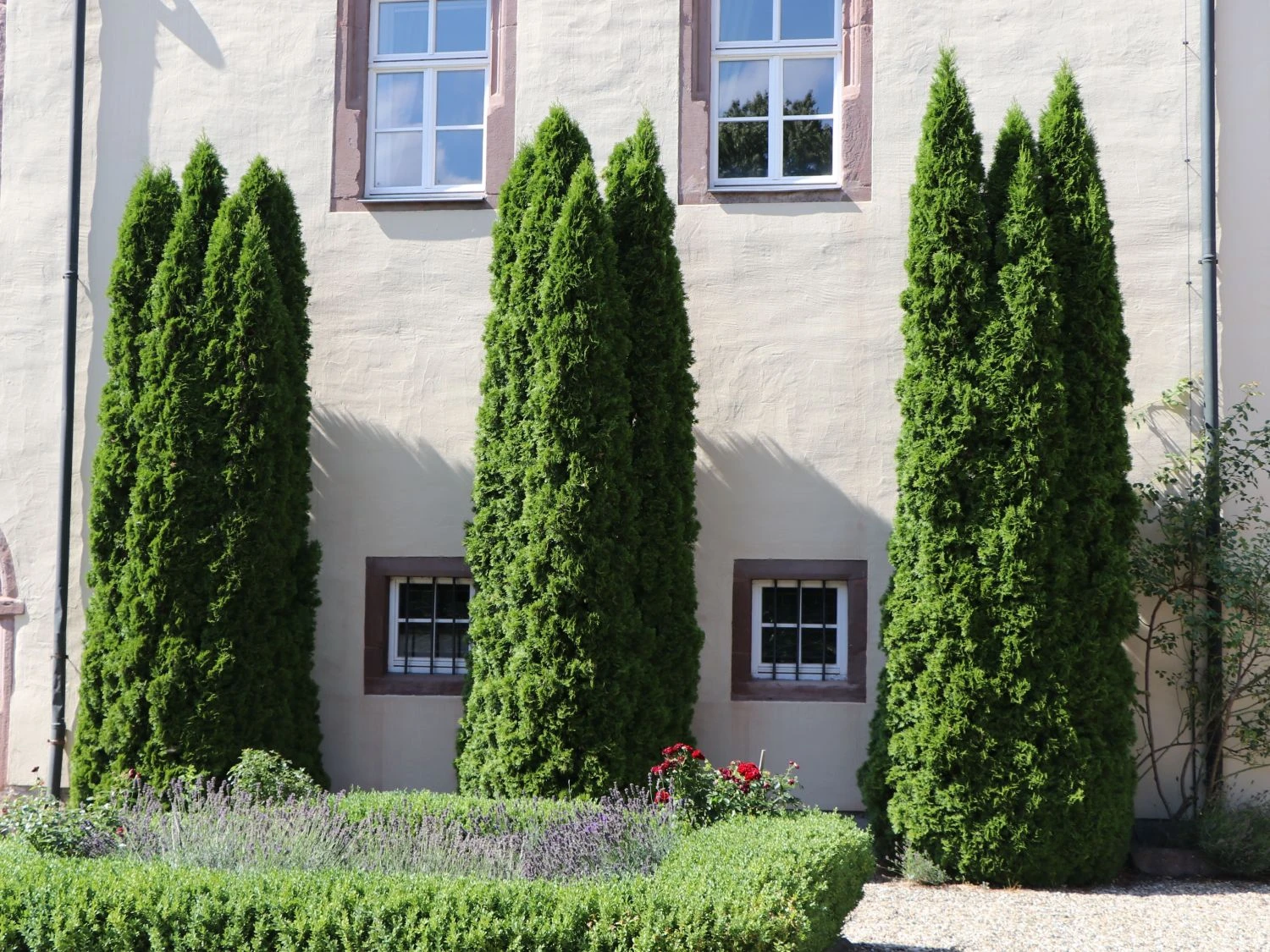 Die Höhe der Pflanzen ist beim Einsetzen das Entscheidende. Je kleiner ein Abendländischer Lebensbaum ist, desto dichter setzt der Gärtner die Pflanzen zusammen. Ihr stabiler Stand resultiert aus dem guten Wurzelwerk, das sie fest stehen lässt. Aus diesem Grund sind drei Meter hohe Thuja ‚Columna‘ Hecken kein Problem. Einen idealen Sichtschutz bietet das schuppenförmige und dichte Laub. Damit bieten sich diese wunderschönen Pflanzen optimal als Rahmen des Grundstücks an. Die Sorte ‚Columna‘ trägt den zusätzlichen Namen ‚Säulen-Lebensbaum‘. Diesem Trivialnamen macht sie alle Ehre! Frisch gesetzte ‚Columna‘-Thujen vertragen auf ihren Zweigen keine Wintersonne. Deshalb pflanzt der Gärtner die jungen Pflanzen am besten im Frühjahr. Auf durchlässigem, feuchtem Boden wächst der Säulen-Lebensbaum ‚Columna‘ am liebsten im sonnigen bis halbschattigen Bereich. Eine außerordentlich dichte und aufstrebende Säulenform zeichnet die ‚Columna‘ aus. Mit dieser Pflanze lassen sich schmal gehaltene Hecken ziehen. Als immergrüne und winterharte Pflanze bleibt die geruchsneutrale, schön dunkelgrüne Nadelfarbe gut erhalten. Tausalz verträgt die Pflanze nicht. Deshalb ist das Bepflanzen an einer viel befahrenen Straße nicht empfehlenswert. Bei länger andauernden Trockenperioden sind tiefgründige Wassergaben ratsam. Die beste Zeit für den Thuja-Schnitt ist im Juni oder Juli. Idealerweise um den Johannistag herum (24. Juni). Auch als Solitärgehölz ist Thuja occidentalis ‚Columna‘ imposant. Sie erreicht an einem guten Standort eine Höhe von bis zu acht Meter. Trotzdem behält sie ihren schlanken Wuchs bei und erreicht einen maximalen Durchmesser von rund 150 Zentimeter. Die attraktive Säulenform behält sie auf jeden Fall bei.