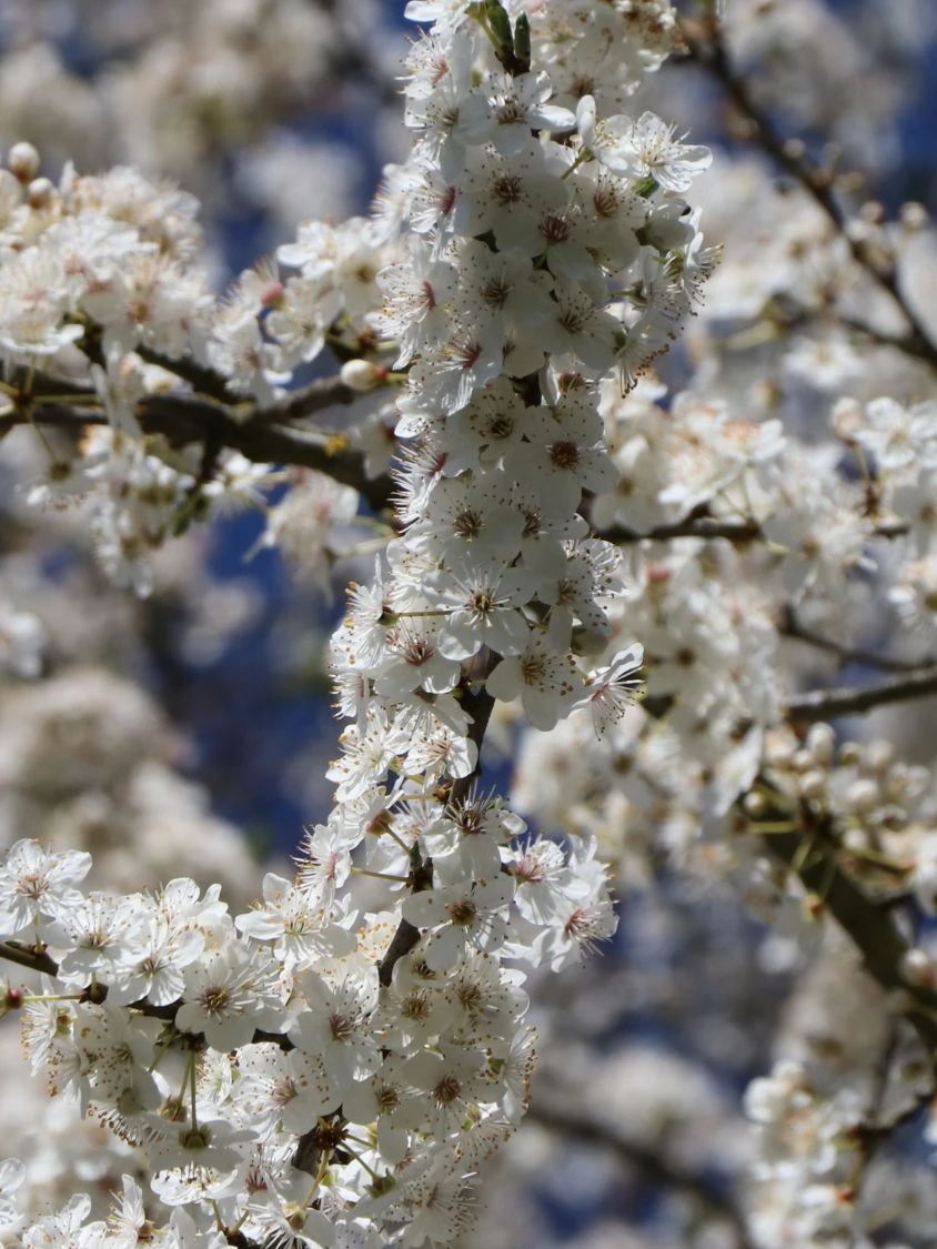 Die delikaten Mirabellen von Prunus domestica subsp. syriaca ‚Ruby‘ begeistern mit ihrem süßen Geschmack mit leichter Säure. Am besten schmecken sie frisch gepflückt. Sie verfeinern sommerliche Obstsalate und Desserts. Köstlich sind sie in roter Marmelade und als Kuchenbelag. Weiterhin sind sie Bestandteil von Saft oder Likör. Prunus domestica subsp. syriaca ‚Ruby‘ schmückt sich mit eiförmigen Blättern, die einen gesägten Rand aufweisen. Sie leuchten in einem erfrischenden Grün. In Kleingärten und Vorgärten setzt sich die Säulen-Mirabelle ‚Ruby‘ als Solitärgehölz attraktiv in Szene. Steht mehr Platz zur Verfügung, bieten kleine, lichte Gruppen des dekorativen Obstgehölzes und in Kombination mit einem Säulenapfel und anderen Pflanzen ein hinreißendes Bild. Diese Säulenmirabelle eignet sich optimal zur Pflanzung in Kübeln und großen Töpfen. Hierin verschönert sie den Balkon und den Hauseingang. Als Kübelpflanze ist diese Mirabelle ein wundervolles Stadtgrün. Auf frischen bis feuchten, gut durchlässigen Böden, die reich an Humus sind, fühlt sich die Säulen-Mirabelle ‚Ruby‘ wohl. Der Baum gedeiht an einem sonnigen Standort oder im Halbschatten. Auf einem sonnenverwöhnten Balkon fühlt sie sich ebenfalls zu Hause. Gerade bei stark besonnten Standorten von Kübelpflanzen, achtet der Gärtner auf eine ausreichende Wasserzufuhr. Es empfiehlt sich im Sommer in den Morgen- oder Abendstunden durchdringend zu gießen. Im Topf wachsende Gehölze schützt der Gartenexperte, indem er das Pflanzgefäß mit Jute oder Folie umwickelt. Ansonsten benötigt die Pflanze keine aufwendige Pflege.