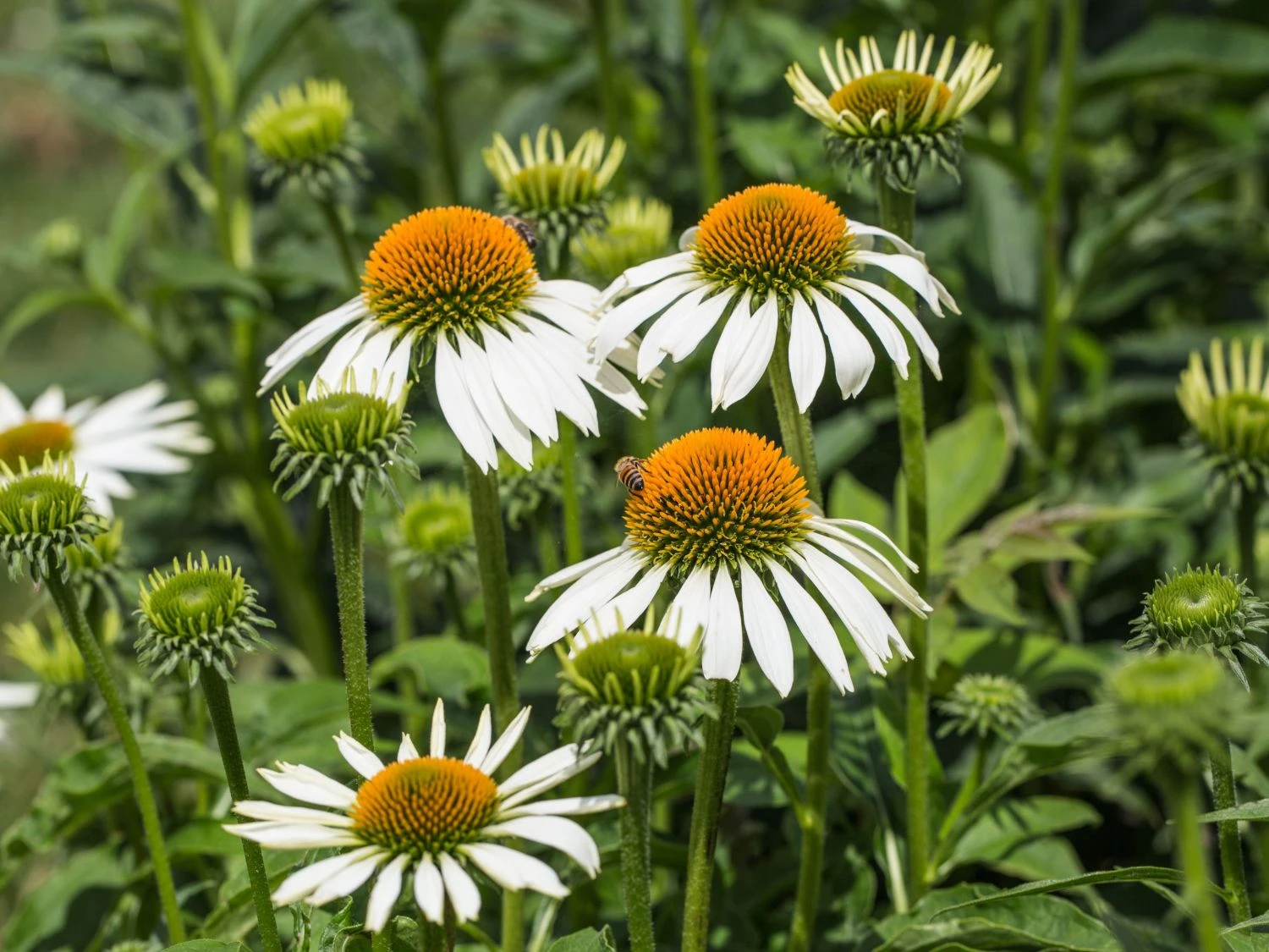 Der Scheinsonnenhut ‚Avalanche‘ ® ist eine der schönsten weißen Echinacea und überzeugt mit seinem anspruchslosen Wesen. In ihrer Heimat, Nordamerika, wird die Echinacea purpurea ‚Avalanche‘ ® von zahlreichen Kolibris umschwärmt. In unseren Breiten begeistern sich Schmetterlinge und Vögel für diese traumhafte Gartenkostbarkeit und beleben den Garten mit ihrer bunten Erscheinung. Bienen erfüllen den Garten mit ihrem beruhigenden Summen und werden vom Nektar dieser Prachtstaude genährt. Diese Staude ist ein echtes Blütenwunder: Diese effektvolle Naturschönheit blüht kontinuierlich und so zahlreich, dass man sich teilweise über 20 Blüten zur selben Zeit an einer Pflanze freuen kann. Durch seinen kompakten Wuchs eignet sich diese schnellwüchsige Staude sehr gut zur Kübelbepflanzung und für kleinere Plätze. Diese voll frostharte Zierstaude aus der Familie der Asteraceae wurde im Jahre 2008 eingeführt. Mit ihrem klaren Weiß setzt sich ‚Avalanche‘ ® gekonnt in Szene.