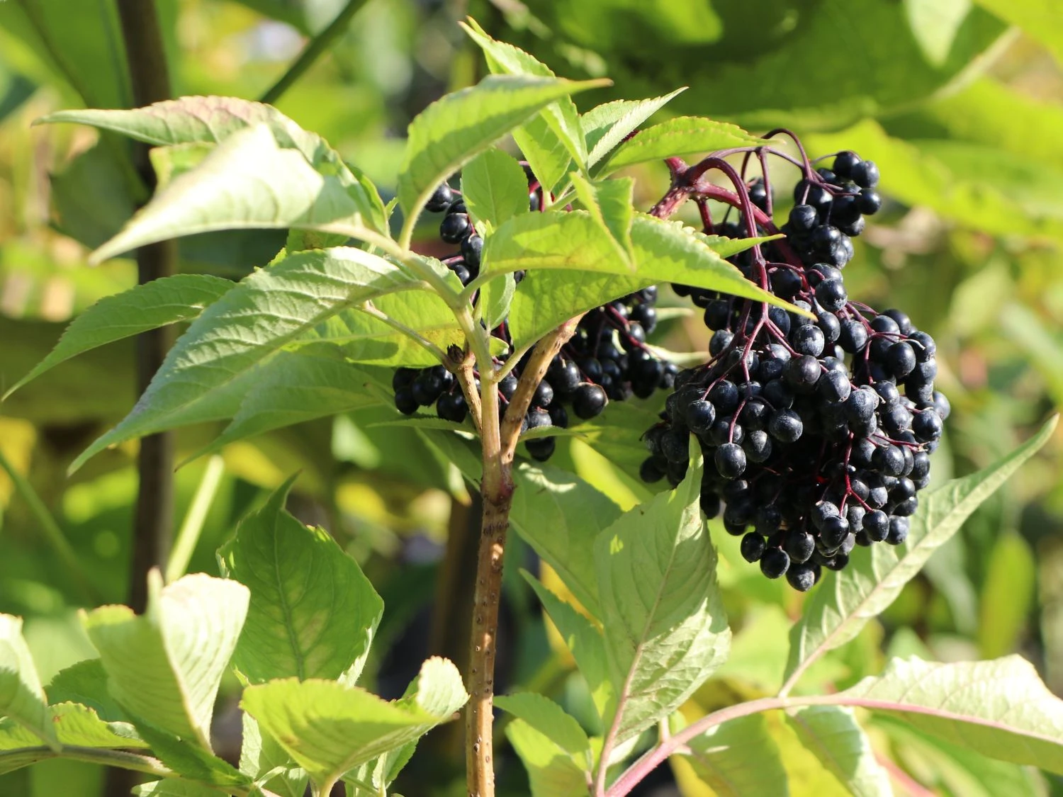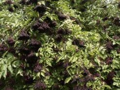 Ein seltener werdendes Gehölz! Dabei ist der Schwarze Holunder ein stark wachsendes und dekoratives Gehölz. Seine Ansiedlung im Garten ist ein großer Gewinn für den Pflanzenfreund. Mit ihm freuen sich Bienen, Hummeln, Schmetterlinge und Vögel. Der Schwarze Holunder ‚Riese aus Vossloch‘ trägt seinen Namen mit absoluter Berechtigung. Er besticht durch seinen locker verzweigten Wuchs und seine bis zu 30 Zentimeter großen Blütendolden. Die Bienen und Schmetterlinge lieben diese duftenden Nahrungsquellen. Sie sind fleißige und dankbare Besucher der aromatischen, großen und weißen Blütendolden. Im Herbst kommen die Vögel zum Naschen, sobald die Beeren reif sind. Eine einzelne Doldentraube erreicht ausgereift ein Gewicht von bis zu 500 Gramm. Der Schwarze ‚Riese aus Vossloch‘ wächst auf normalem Gartenboden. Gerne gedeiht er in einem kalk- und stickstoffhaltigen Boden. Eine sonnige bis halbschattige Lage macht seinen Standort perfekt. In der Blütezeit dieses schönen Gehölzes bilden sich die großen, weißen Blütendolden. Schirmförmig erscheinen sie und machen diese Pflanze zu einem schicken Ziergehölz. In der Zeit von Juni bis Juli verbreiten sie mit ihrem zauberhaften Aussehen und ihrem betörenden Duft ein frühsommerliches Flair. Sein schönes, dunkelgrünes Laub bildet einen eindrucksvollen Kontrast zu den weißen und großen Dolden, gebildet aus den unzähligen, kleinen, weißen Blüten. Die Dolden sind vielseitig in ihrer Verwendung nutzbar. Aus den Blüten erwachsen ab September die typischen violett-schwarzen, kugeligen Beeren, die Holunderbeeren. Von September bis Oktober sind sie erntereif. Die leckeren und gesunden Beeren sind ausschließlich gekocht zu genießen.
