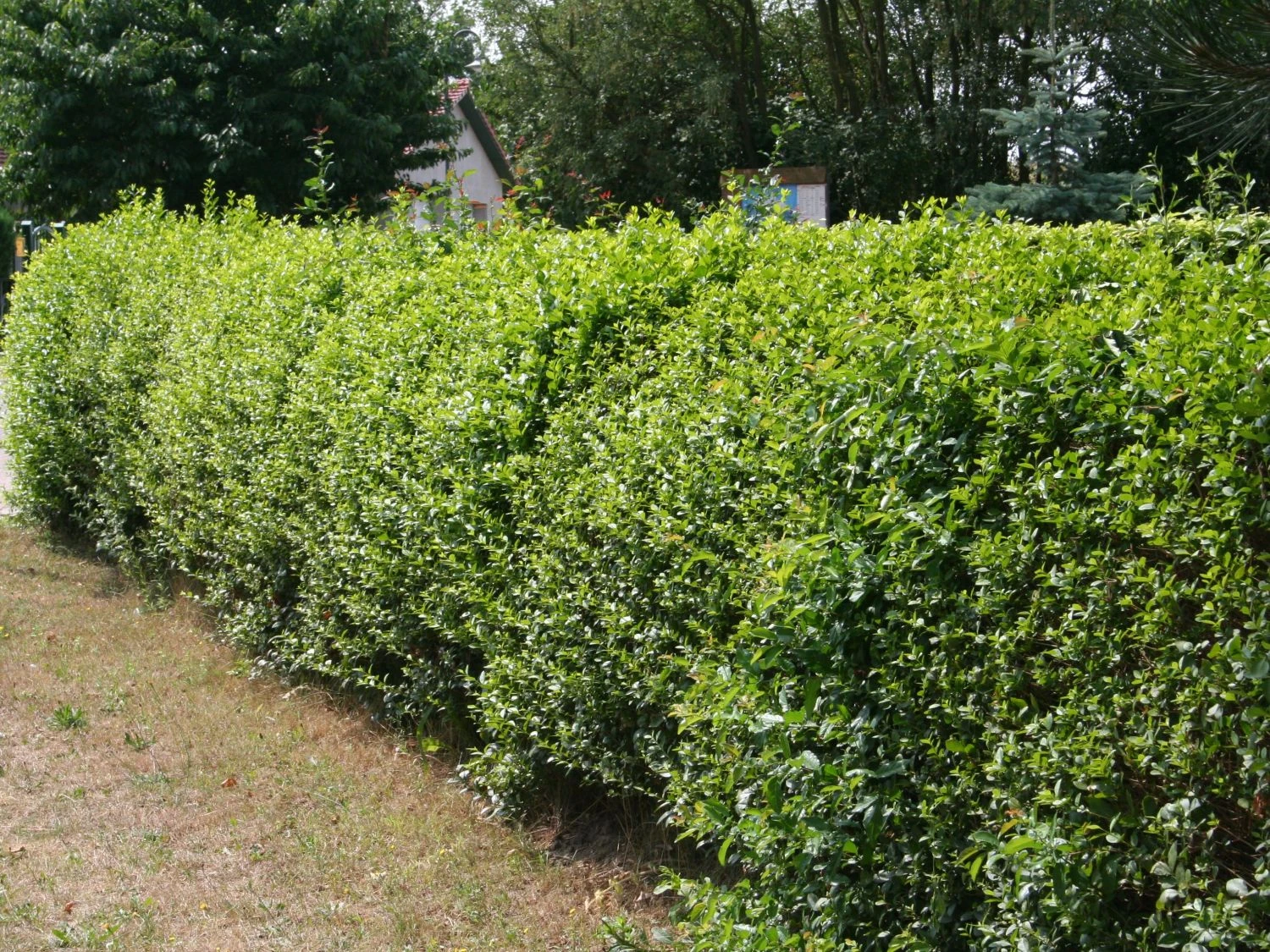 Der Formschnitt sollte um den 24.6. vollzogen werden, da Pflanzen zu dem Zeitpunkt eine Wachstumspause machen. Zusätzlich sollte beachtet werden, dass nie bei Hitze- und Trockenheit geschnitten wird. Damit die Ligusterhecke später nicht von unten aufkahlt, sollte immer leicht schräg nach oben geschnitten werden, so dass die Hecke im unteren Bereich breiter ist als im oberen. Dadurch bekommen auch die unteren Blätter noch ausreichend Licht und die Hecke bleibt bis unten schön und dicht geschlossen.