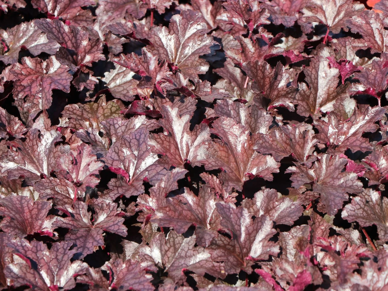 Das Silberglöckchen ‚Plum Pudding‘ ® ist eine sehr kontrastreiche Sorte, welche gern in einem Staudenbeet oder als Kübelpflanze verwendet wird. Auch als Schnittpflanze kann sie wunderschön aussehen. Die botanische Bezeichnung der Pflanze heiß Heuchera micrantha ‚Plum Pudding‘ ®. Sie stammt aus der Familie der Steinbrechgewächse (Saxifragaceae). Das Auffällige dieser Staude ist der intensiv rotbraune Blattschmuck. Die Blattoberseite ist silbrig überhaucht und die Unterseite besteht aus einem kräftigen Dunkelrot. Wenn die Pflanze von Juli bis August blüht, so schenkt sie dem Menschen eine wundervolle weißlich rosafarbene Blüte.