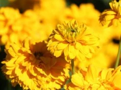 Heliopsis scabra ‚Goldgrünherz‘ hat Rhizome, die für das Überdauern der Pflanze sorgen und durch die sie in die Breite wächst. Eine mehrjährige Pflanze bildet einen lockeren Horst. Die Staude gedeiht auf frischem, tiefgründigem und sandigem Boden, der Humus enthält. Sie bevorzugt feuchten Boden und verträgt keine Staunässe. Auf einem sonnigen Standort entwickeln die Blüten eine tiefgelbe Farbe. Gärtner pflanzen das Sonnenauge ‚Goldgrünherz‘ während es ganzen Jahres. Sie geben ihr Wasser und Kompost, den sie in kleinen Mengen bis Anfang August in regelmäßigen Abständen erhält. Trockene Tage übersteht sie ohne Hilfe. Pflanzenfreunde entfernen verblühte Blumen und schneiden trockene Stängel und Blätter im Frühjahr ab. Die Pflanze ist bis -35°C winterhart und benötigt aus diesem Grund keinen besonderen Winterschutz. Pflanzenfreunde freuen sich auf die Blütenfülle von Heliopsis scabra ‚Goldgrünherz‘ in der kommenden Saison.