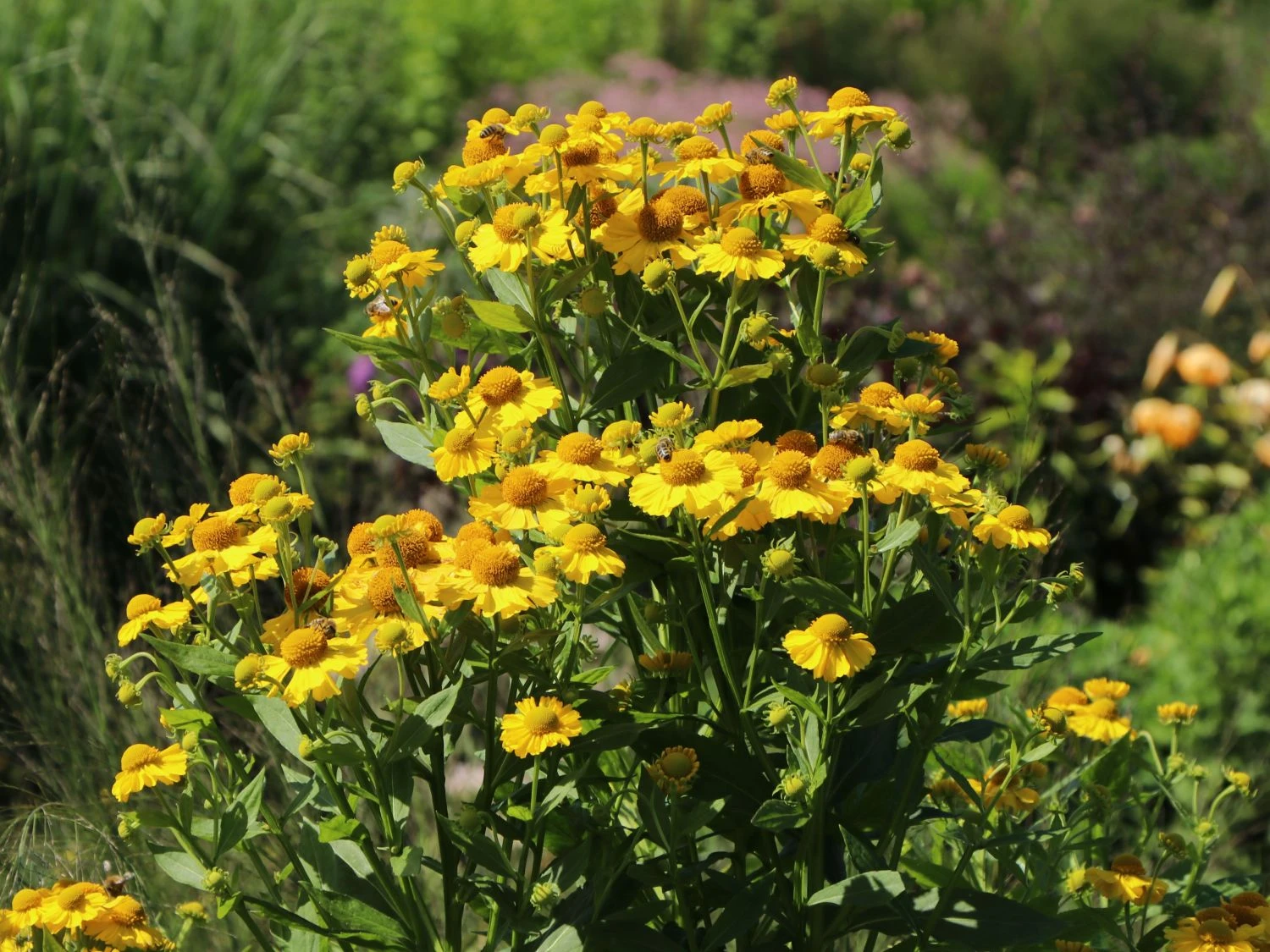 Kombinierbar ist diese Staudenpflanze mit nahe zu allen anderen Staudenpflanzen, die dieselben Bedingungen liebt. Also einen nährstoffreichen, durchlässigen Gartenboden in voller Sonne. Allerdings sollte man es ihr nicht zu trocken machen, regelmäßige Wassergaben sind selbstverständlich. Und der Gärtner wird von Juli bis in den Oktober hinein mit einer wahren Blütenfülle belohnt werden. Selbst wenn andere Stauden ihr Pulver schon längst verschossen haben, blüht das ‚Sonnenwunder‘ immer noch und überragt die anderen Stauden.