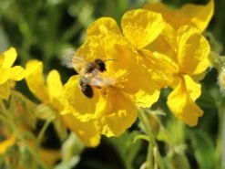 Zahlreich tummeln sich Schmetterlinge, Bienen und Hummeln an ihr und ergötzen sich an dem schmackhaften Nektar. Schnecken meiden das Sonnenröschen. Bezüglich des Standortes bevorzugt das Helianthemum x cultorum ‚Sterntaler‘ einen durchlässigen, eher steinreichen Boden. Bei schweren Untergründe ist das Einarbeiten von feinem Kies oder Sand empfehlenswert, um die optimale Bodenbeschaffenheit zu erreichen. Regelmäßige Wassergaben sind an heißen Sommertagen wichtig. Staunässe ist zu vermeiden. Die Staude ‚Sterntaler‘ eignet sich für den sonnigen Steingarten und als Beet- oder Wegeinfassung. Sie ziert fabelhaft Balkonkästen sowie Kübel und auf Mauerkronen gepflanzt, bildet sie schnell einen hängenden Blütenteppich aus.