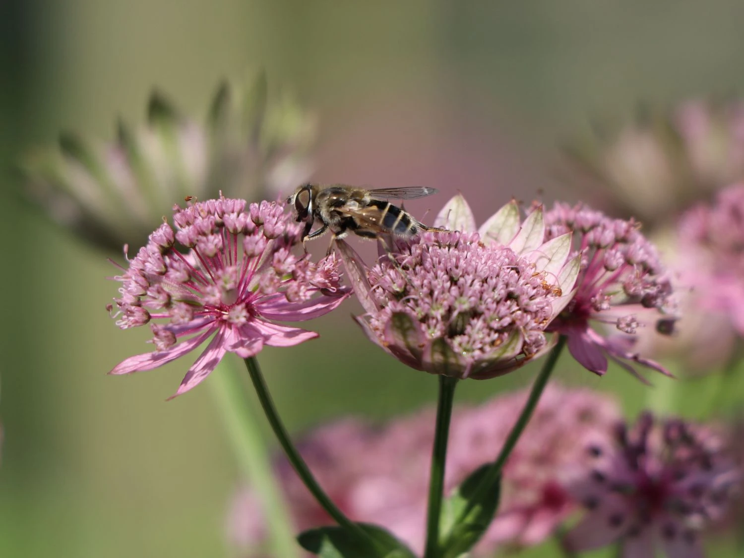 Ihr Wuchs erreicht eine maximale Höhe von bis zu 100 cm, so steht sie im hinteren Staudenbeet gerade richtig. Das gut arrangierte Beet kann die Sterndolde ‚Rosea‘ einen passenden Rahmen bieten, in dem noch viel Platz für anders farbig blühende Schönheiten ist. Das lanzettlich geformte Blatt der Staude ist hell- bis mittelgrün und leuchtet frisch und sommerlich zu den schönen weißrosafarbenen Doldenblüten. In Natur- und Bauerngärten ist diese Sterndolde eine besonders gern gesehene Bewohnerin. Sie ist deshalb so vielseitig im Garten einsetzbar, weil sie so gut wie an fast jedem Standort stehen kann. Sie hat weder gegen die volle Sonne, noch vor dem kompletten Schatten etwas einzuwenden. Nicht selten wird sie auch zu den Schattenstauden gezählt, pflanzt sie der Gartenfreund dann in der Praxis jedoch am häufigsten in den Halbschatten, um ihr beides zu gewährleisten.