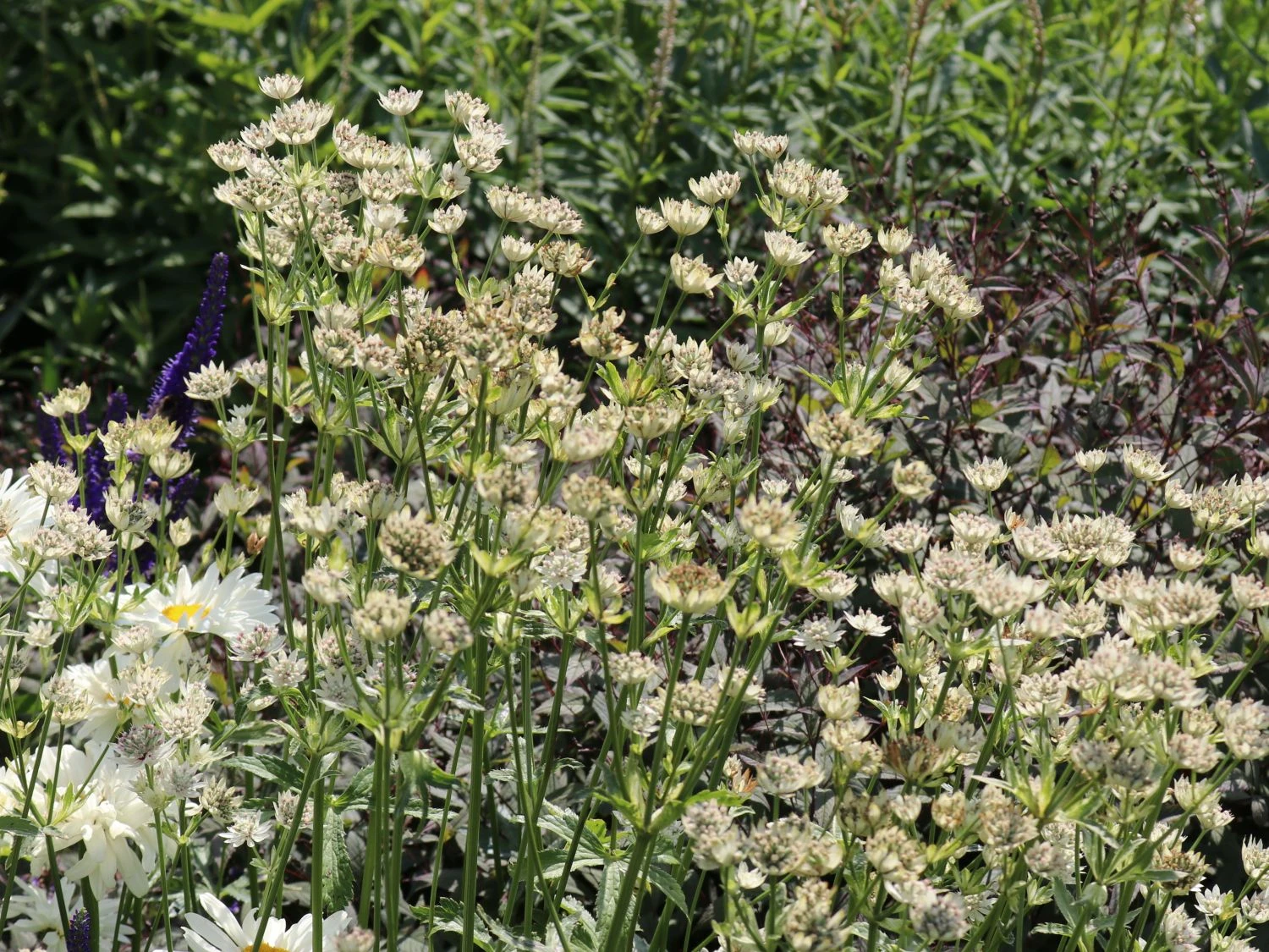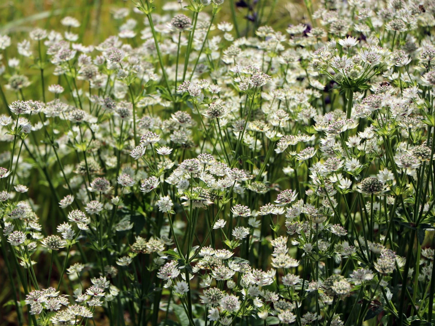Die Sterndolde ‚Star of Billion‘ hat recht dünne Stile und sie trägt sehr viele sehr kleine Blüten, so dass die Staude sehr luftig wirkt. Daher hat sie auch den Titel als eine der schönsten Schleier-Sterndolden. Sie kommt aus dem berühmten East Lambrook Manor Garden, die der bekannten englischen Gärtnerin Magery Fish gehören. Von der Herkunft handelt es sich um eine alte Pflanze aus den englischen Cottage Gärten, die hier auf moderne Weise variiert wurde. So vermittelt sie schnell ein Cottage-Garten Flair und wird gerne für eine sommerliche romantische Vase geschnitten oder auch getrocknet.