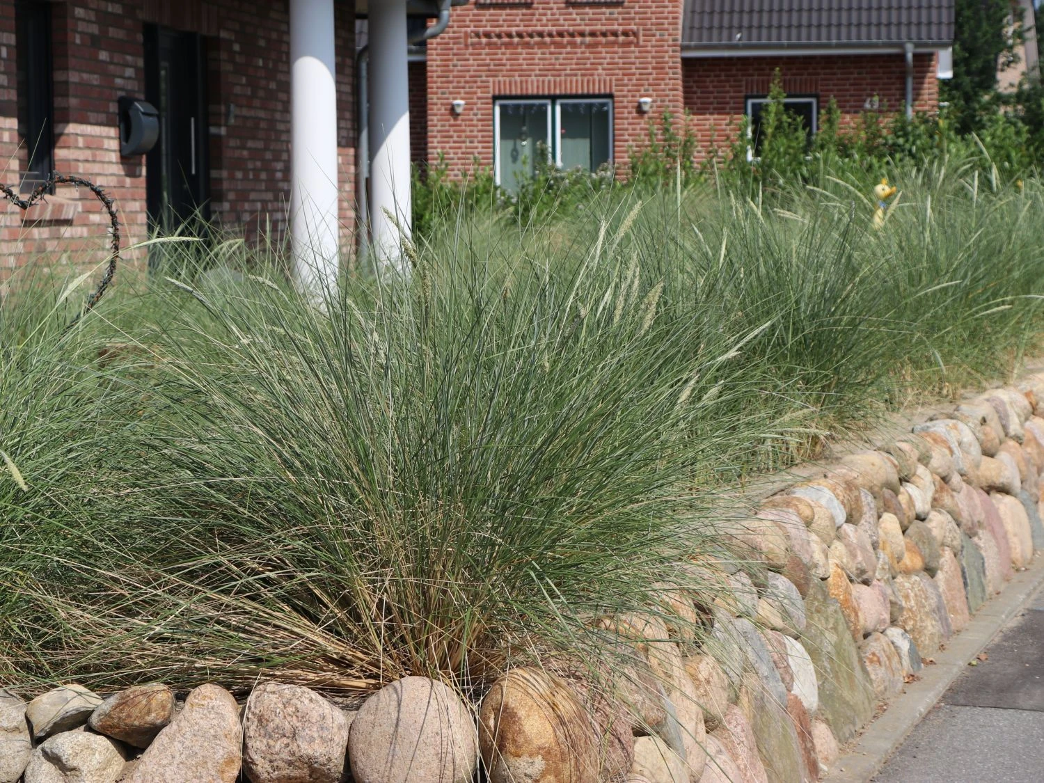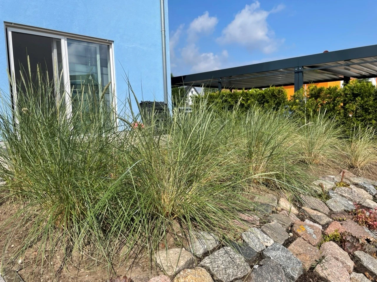 Der Strandhafer ist ein Blickfang, der maritimes Flair in den Garten bringt. Er ist auch als Gewöhnlicher Strandhafer bekannt und gehört zur Pflanzenfamilie der Süßgräser. Er ist auch unter den Namen Sandhalm, Seehafer oder Sandrohr bekannt. Es handelt sich um ein aufrecht und kräftig wachsendes Gras. Dieses erreicht eine Wuchshöhe von etwa 100 cm und wächst bis zu 40 cm in die Breite. Da das Gras viele Ausläufer bildet ist es ideal, um Böschungen und Hänge zu befestigen. Das macht (bot.) Ammophila arenaria in freier Wildbahn so wichtig: An der Meeresküste dient er als Dünenbefestigung. Die steifen Blätter des Strandhafers werden zwischen 30 und 60 cm lang und sind vier bis sechs Millimeter breit. Die graugrünen, schmalen Blätter hängen bogig über und wirken besonders filigran, da sie oft eingerollt sind. Von Juni bis August gesellen sich hübsche Blütenstände zu dem lockeren Blattwerk der Pflanze. Wenn der Strandhafer blüht, begeistert er mit Blütenrispen von circa 15 cm Länge. Die Rispen setzen sich durch einzelne unscheinbare Blüten zusammen. Nach der Blüte bleibt der Fruchtstand stehen und wirkt ebenfalls dekorativ.