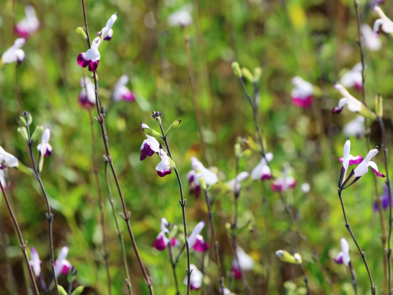 Der Strauchige Salbei ‚Amethyst Lips‘ bezaubert mit seinem einmaligen Aussehen. Unzählige kleine Lippenblüten wirken, als würden sie den Sonnenschein küssen wollen. Die zweifarbigen Blüten zeigen sich in reinem Weiß und einem intensiv kontrastierenden Purpurviolett. Diese Blüten muss man mit eigenen Augen gesehen haben, um zu glauben, dass es diese schöne Farbkombination tatsächlich gibt! Doch (bot.) Salvia greggii ‚Amethyst Lips‘ kann noch viel mehr als nur gut aussehen. Dieser wunderschöne Halbstrauch bietet Bienen, Hummeln, Schmetterlingen und vielen anderen kleinen Nützlingen eine reiche Nahrungsquelle. Die einfachen Lippenblüten locken mit ihrer Farbe und ihrem leichten Duft des Nektars unzählige hungrige Insekten an und sorgen für emsiges Leben im Garten. Somit bietet der Strauchige Salbei ‚Amethyst Lips‘ nicht nur einen Hochgenuss für unser menschliches Auge, sondern erfüllt scheinbar ganz nebenher auch noch einen ökologischen Nutzen. Dieser dekorative Dauerblüher hat eine unfassbar lange Blühphase. Sie dauert von Juni bis September, manchmal bis in den Oktober hinein an. Während viele andere Pflanzen bereits den Sommer hinter sich lassen, beginnt der Strauchige Salbei ‚Amethyst Lips‘ nochmal richtig durchzustarten. Das macht ihn für Insekten besonders wertvoll, da in diesem Zeitraum zumeist nicht mehr viel Nahrung zu finden ist.