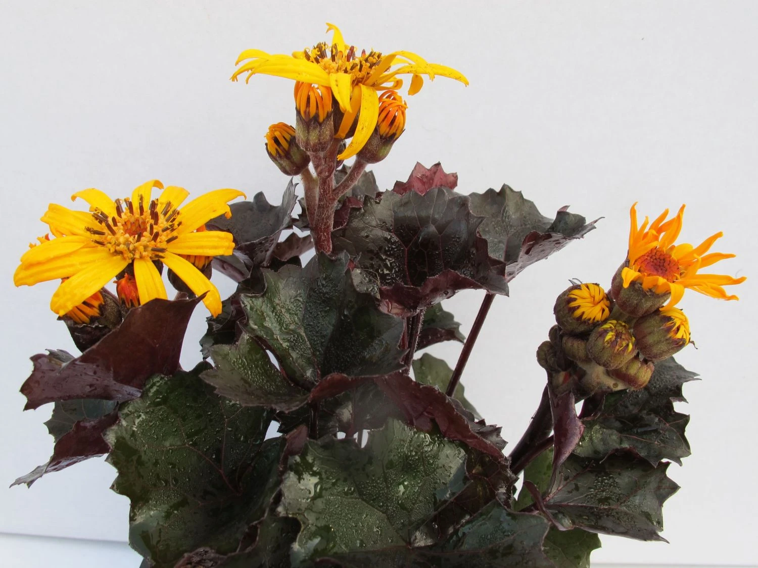 Der Strauß-Goldkolben ‚Pandora‘ ist eine herrlich kompakt wachsende Staude. Besondere Beachtung verdienen neben den goldgelben Blüten die leicht gezackten Blätter in ihrem dunklen Violett. Mit (bot.) Ligularia dentata ‚Pandora‘ kommt eine reiche Blütenfülle in den Garten und eine reiche Nektarquelle für viele Insekten obendrein. Bienen, Hummeln und andere kleine Gartenbewohner erfreuen sich an der Nahrung und kommen gerne zu Besuch. Am liebsten steht der Strauß-Goldkolben ‚Pandora‘ an einem sonnigen bis halbschattigen Standort. Der Boden sollte eine ausreichende Feuchte bieten, nährstoffreich, locker und gut durchlässig sein.