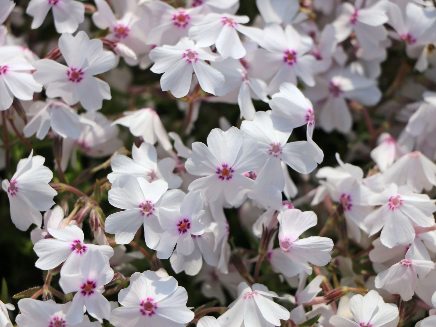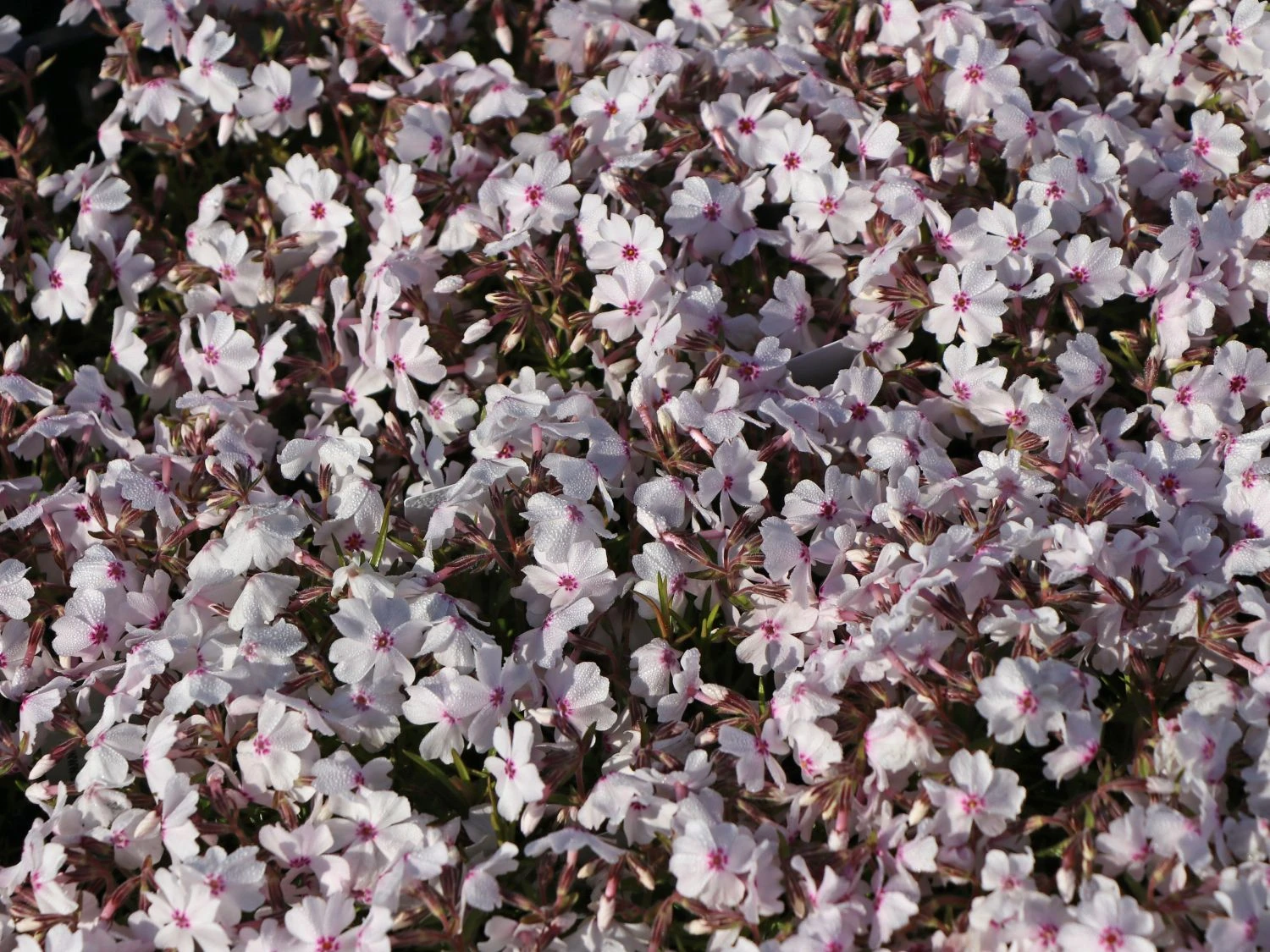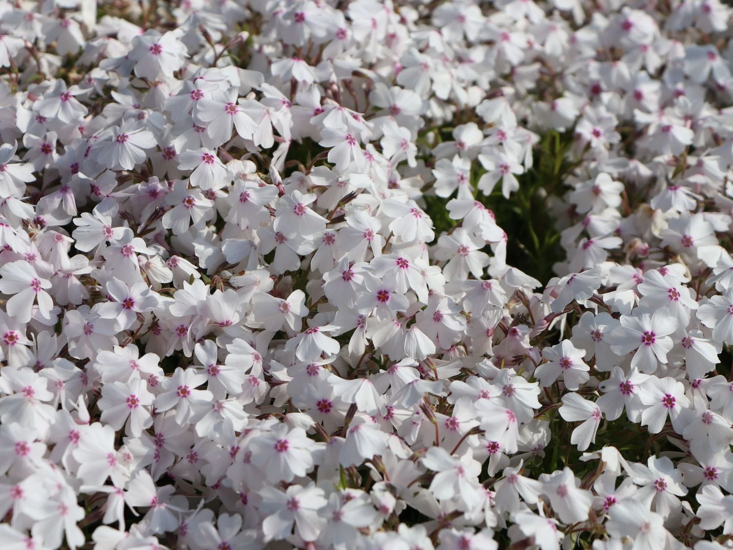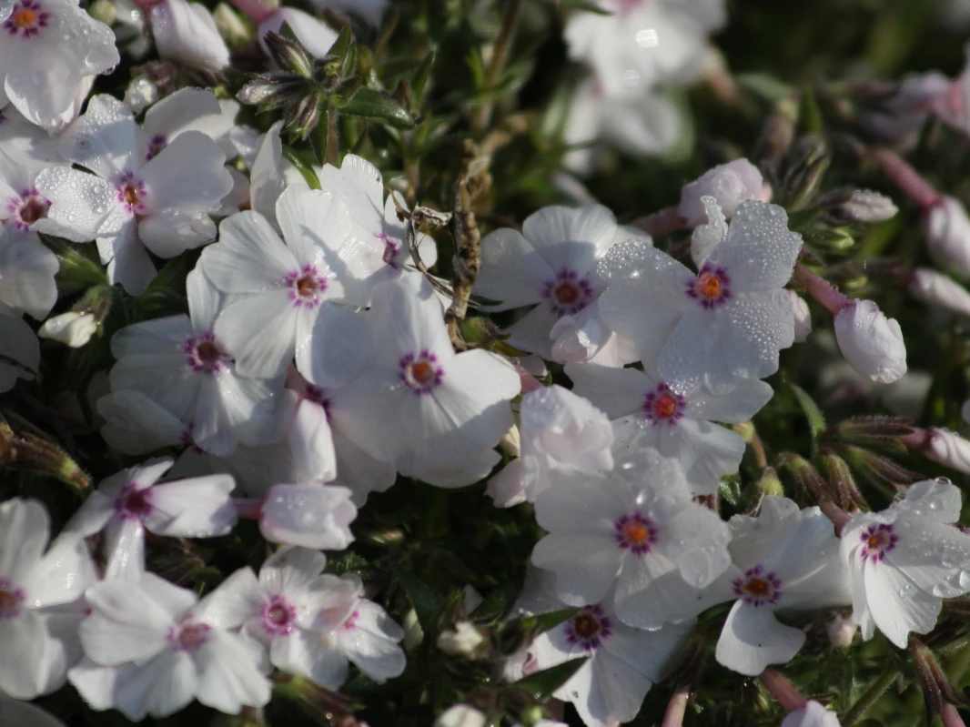 Durch einen Rückschnitt nach der Blüte kann man für kompakte Teppiche sorgen. Diese in ihrem Aussehen erfrischend andere Zierpflanze ist für jeden die richtige Wahl, der sich das gewisse Extra für seinen Garten wünscht, Farbakzente setzen oder einzelne weiße Tupfer im Garten haben möchte. Die elegante Phlox subulata ‚Amazing Grace‘ kleidet sich in einem vornehmen, strahlenden Weiß. Die doldenartigen Blütenstände bestehen aus kleinen, sternförmigen Einzelblüten, die durch ihr Zentrum besonders einnehmend auf den Betrachter wirken. In einem strahlenden Rot, das auch ins Violette übergehen kann, sind die faszinierenden Augen der Blüten gefärbt. Im April bis Mai kann man sich über die anmutigen, weißen Blüten freuen, die manchmal mit einem zarten Rosa überhaucht sind. Das Blattwerk dieser aufsehenerregenden Teppich-Flammenblume ist grasartig und ganzrandig. Das ganze Jahr über präsentiert ‚Amazing Grace‘ sein dunkelgrünes Laub.