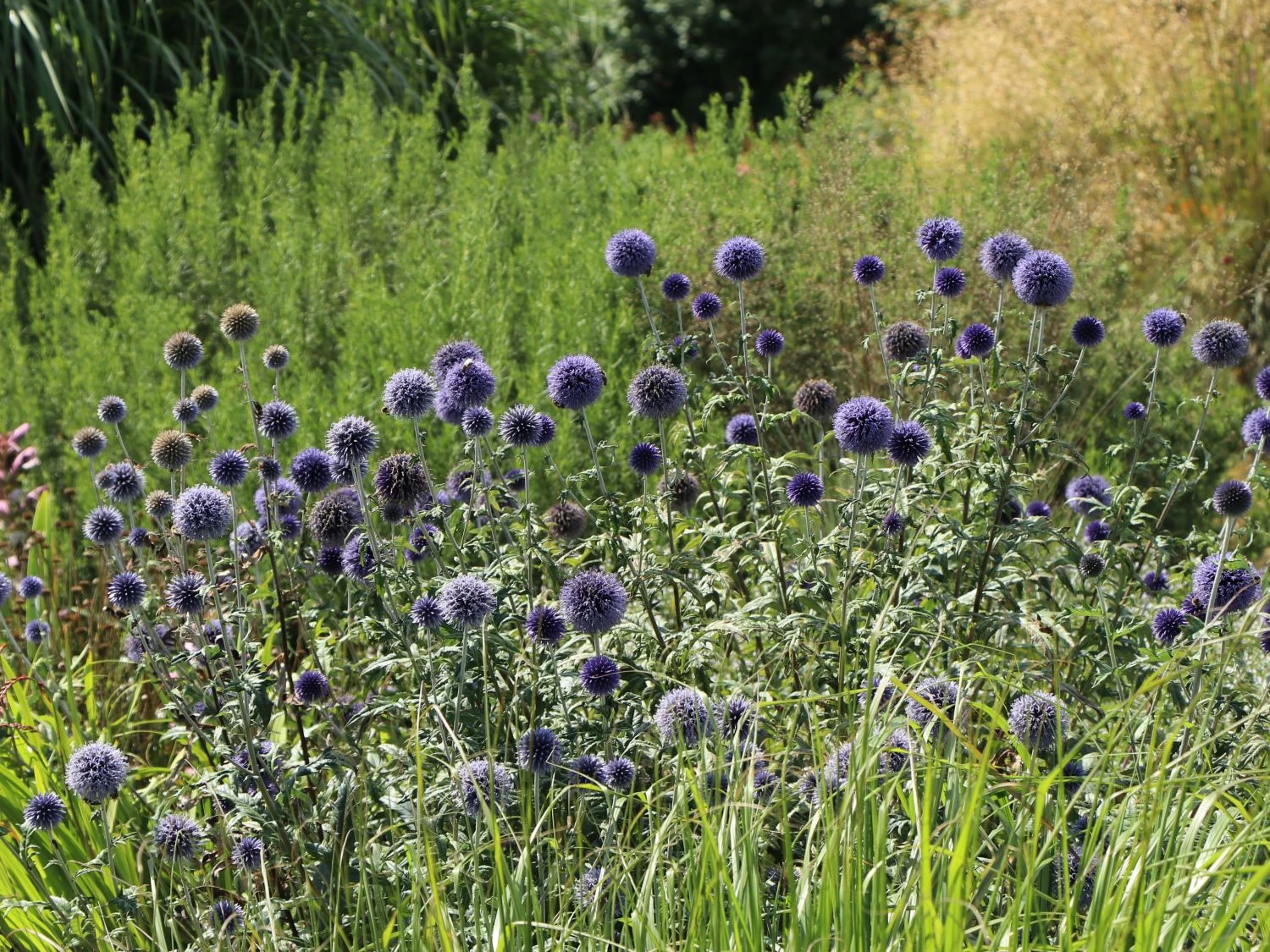 Diese anspruchslose Staude wächst auf eine Höhe von 80 cm und ist zur Blütezeit ein unübersehbarer Anblick. Dabei stellt die Veitchs-Kugeldistel ‚Veitchs Blue‘ an den Gärtner wenig Ansprüche und ist durch und durch pflegeleicht. Sie möchte einen warmen und vor allem sonnigen Standort. Der Boden ist für Echinops ritro ‚Veitchs Blue‘ gut durchlässig ideal und kann von lehmig bis steinig fast jede Struktur haben. Auf einem Quadratmeter können bis zu sechs Pflanzen Platz finden. Als Pflegemaßnahmen sollten sich die Gartenfreunde auf gelegentliches Auflockern des Bodens einstellen, das Gießen vergessen sie nicht und verblühte Stängel entfernen sie. Denn dann bildet die Veitchs-Kugeldistel ‚Veitchs Blue‘ neue Blüten aus.