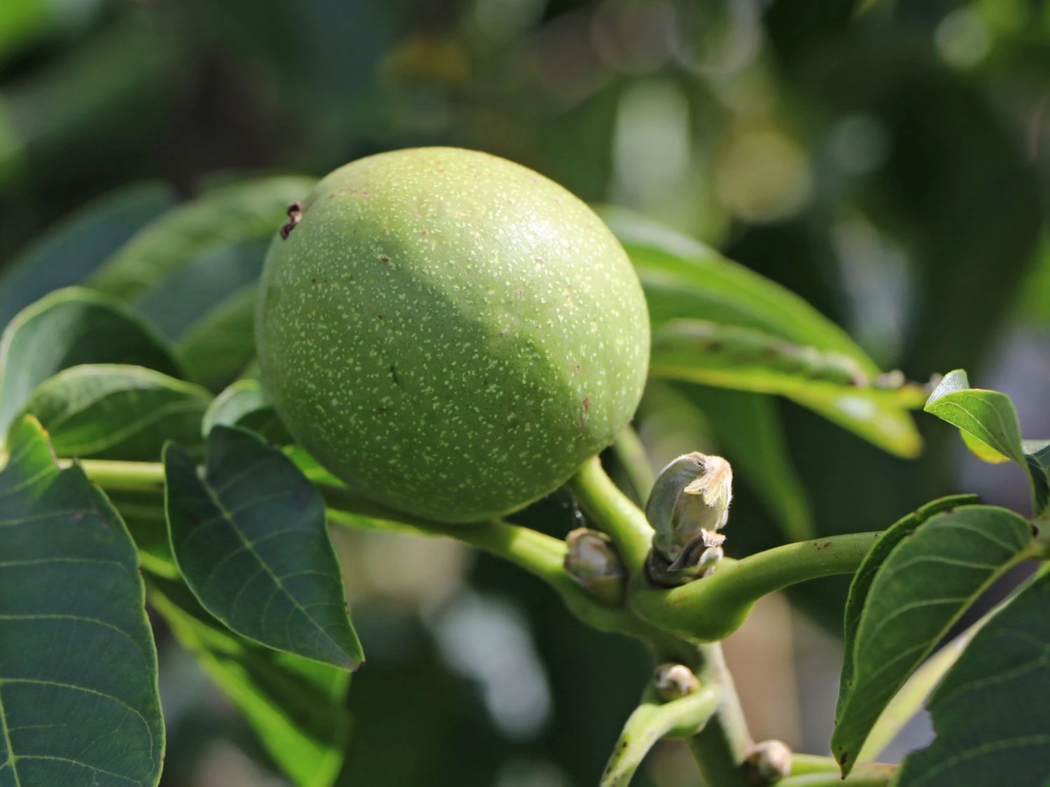 Im Garten beherrscht Juglans regia ‚Mars‘ Veredelung größere Flächen mit ihrer reizvollen Schönheit. Sie ist der Mittelpunkt auf Rasenflächen oder thront über niedrigen Ziergehölzen, die Schatten tolerieren. Mit ihrer ansprechend geformten Krone spendet sie an heißen Tagen wohltuenden Schatten. Ihre Früchte zeichnen sich durch einen großen Kern aus, der die Schale gut ausfüllt und leicht lösbar ist. Die Nüsse der Walnuss ‚Mars‘ Veredelung sind im Frischverzehr unglaublich köstlich. Gleichzeitig sind sie unverzichtbarer Bestandteil unzähliger Rezepte. Besonders in der Weihnachtszeit verfeinern sie Kuchen, Plätzchen und Kekse mit ihrem charakteristischen Aroma. Das ganze Jahr über schmecken sie in Salaten oder Gemüsepfannen. Die Walnüsse sind lecker und gesund. Sie sind reich an Omega-3-Fettsäuren, die den Blutdruck und Cholesterinspiegel senken. Juglans regia ‚Mars‘ Veredelung ist eine Züchtung aus dem Ort Zelesice in Tschechien. Sie gedeiht an sonnigen bis halbschattigen Standorten. Hohe Erträge erzielt sie auf frischen bis feuchten, durchlässigen und tiefgründigen Böden, die reich an Nährstoffen sind. Der ideale pH-Wert liegt zwischen schwach sauer und neutral. Staunässe toleriert die Walnuss ‚Mars‘ Veredelung nicht. Sie ist bis -23 °C winterhart. Nach einigen Standjahren kann ein Schnitt vollzogen werden. Dieser sollte zeitnah nach dem Laubfall durchgeführt werden, da die Walnuss einen starken Saftstrom hat. Diese Sorte ist selbstfruchtend, um höhere Erträge zu erlange ist es sinnvoll verschieden Sorten zu pflanzen. Des Weiteren eignet sie sich für höhere und kühlere Lagen.