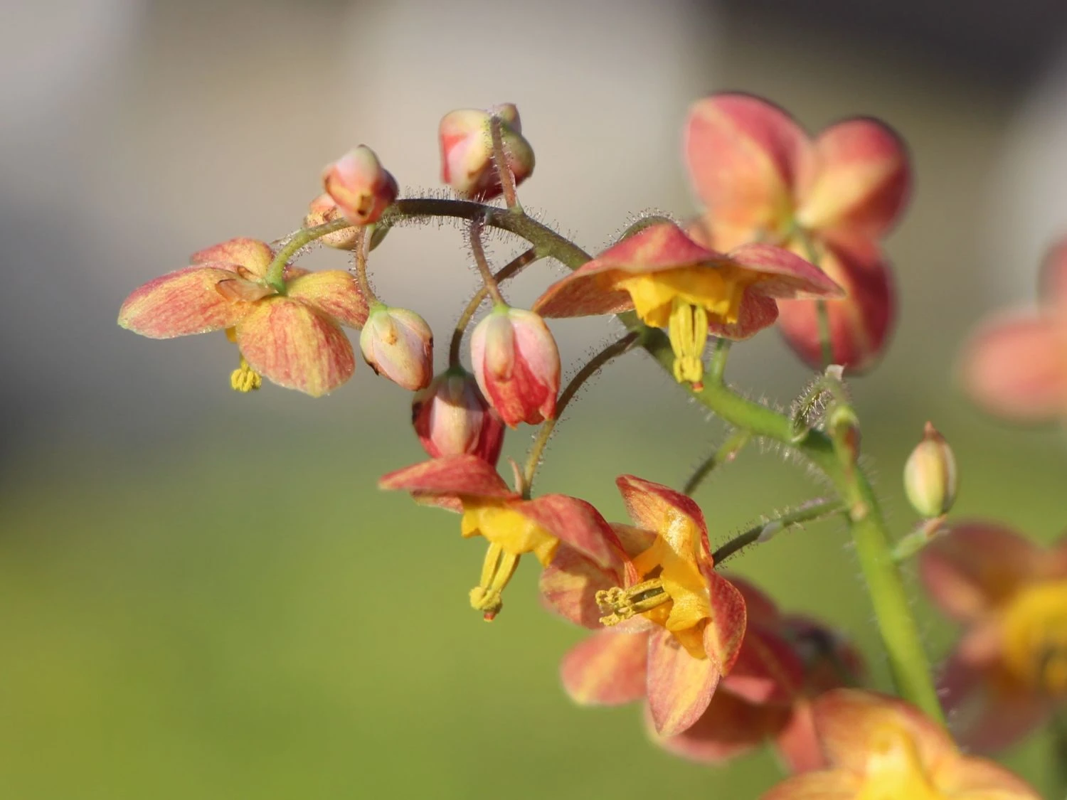 Die Warley Elfenblume ‚Ellen Willmott‘ ist eine zauberhafte Staude, die mit ihren herrlichen, zweifarbigen Blüten überzeugt. Dabei bildet das grüne Laub einen zauberhaften Kontrast. Das (bot.) Epimedium x warleyense ‚Ellen Willmott‘ ist bereits aus einiger Entfernung zu sehen. Nach der Blütezeit wächst ihr ein schönes, großes Blattwerk, das an geschützten Orten durch den Winter hindurch an der Pflanze bleibt. Die Blüte der Warley Elfenblume ‚Ellen Willmott‘ beginnt ab April und endet im Laufe des Mai. Diese schöne Sorte hebt sich durch ihre zweifarbigen Blüten hervor. Die äußeren Blütenblätter erblühen in einem warmen Braunorange. Die inneren Blütenblätter sind gelb. Die Warley Elfenblume ‚Ellen Willmott‘ bildet erst ihre niedlichen Blüten, im späteren Verlauf der Blütezeit erscheint das wintergrüne Laub.
