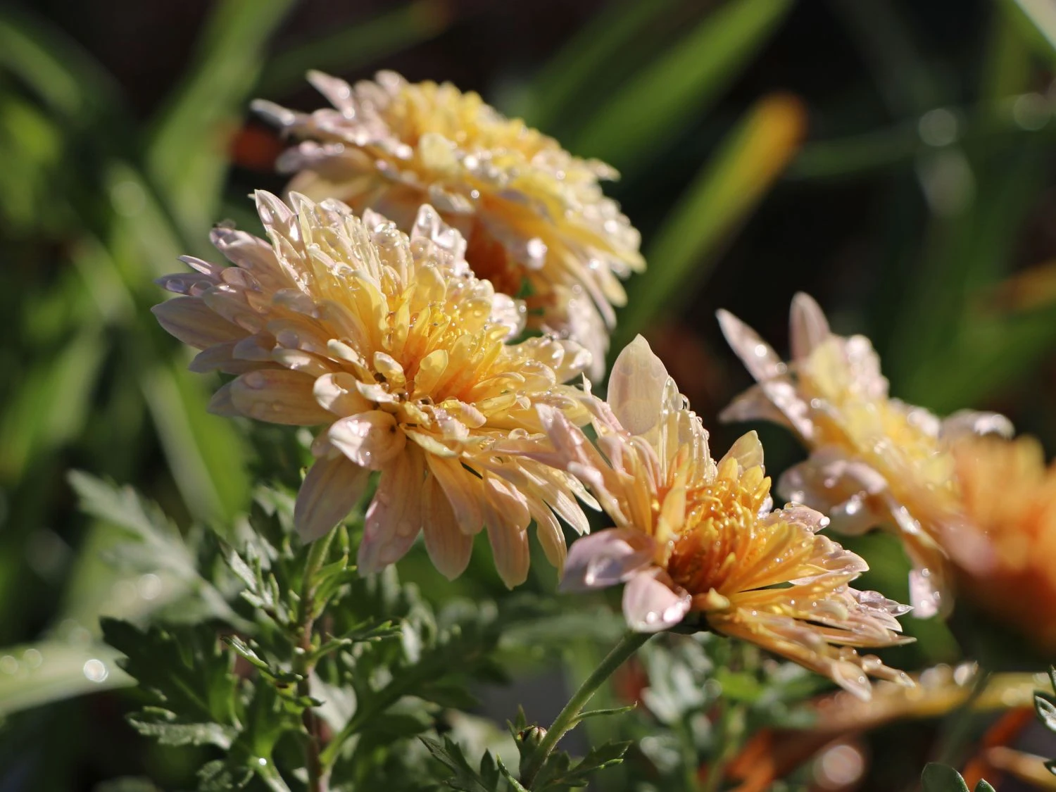 Ihre Knospen entfalten sich erst circa September und halten sich durch ihre winterharte Eigenschaft bis November. Die Chrysanthemum x hortorum ‚Scherzo‘ erstrahlt in einem goldgelben Farbton und verzückt damit die Augen eines jeden Betrachters. Eine weitere Steigerung erzielt die beeindruckende, zahlreiche Anzahl der Blüten, die sich an der circa 40 bis 60 Zentimeter hohen Pflanze tummeln. Es ist nur noch ein geringer Anteil des graugrünen Laubes zu sehen. Aber gerade genug um, zu der malerischen Schönheit der vollständig geöffneten Knospen, einen farblichen Kontrast zu schaffen. Für echte Liebhaber der Botanik bildet die Blütezeit, der auf griechisch genannten ‚Goldene Blumen‘ ein äußerst gelungenes Ende der Saison. Mit ihrem buschig, verzweigten Wuchs ragt sie zudem bis zu 50 Zentimeter in die Breite.