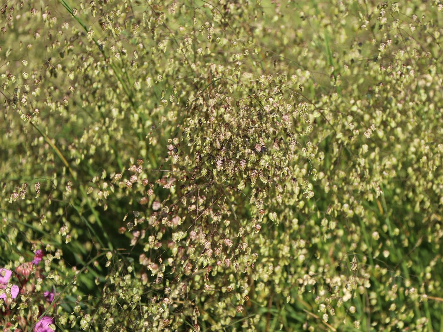 Mit feingliedrigen Blütenrispen schmückt sich das Zittergras von Mai bis weit in den August hinein. Die zierlichen Blüten gaben dem Gras seinen klingenden Namen. Schon beim kleinsten Windhauch zittern die zarten grünlich bis braunen Rispen anmutig. Sie sind die grazile Zierde dieser Pflanze. Tropfenförmig hängen sie an den langen Halmen herab. Ein zauberhaftes und leichtes Bild, das sich dem Betrachter bietet. Im Garten empfiehlt sich (bot.) Briza media für vielfältige Arrangements. Einzeln gepflanzt, in Gruppen, auf Freiflächen oder in Stein- und Heidegärten wirkt das Gras gleichermaßen elegant und zieht die Blicke auf sich.