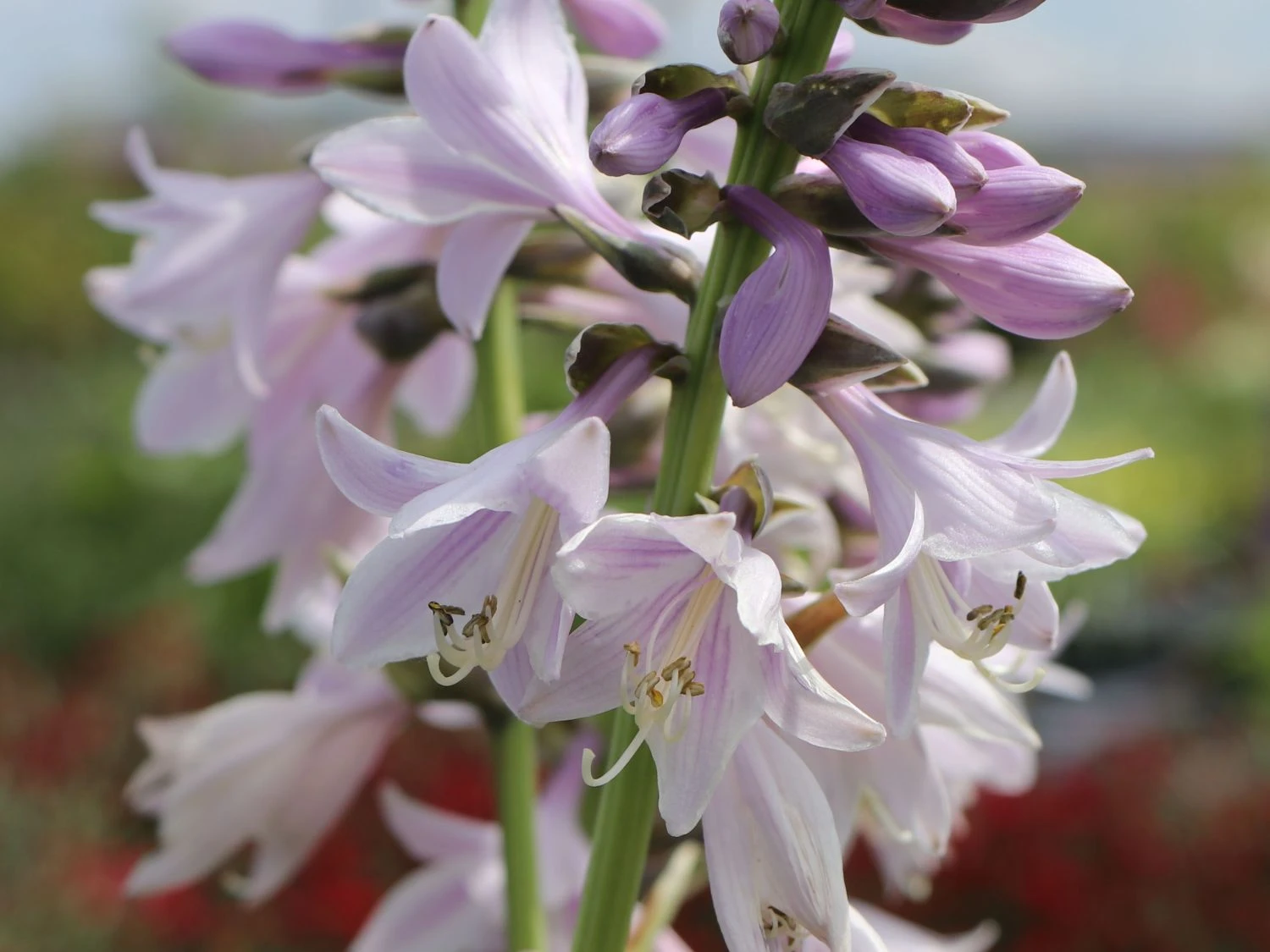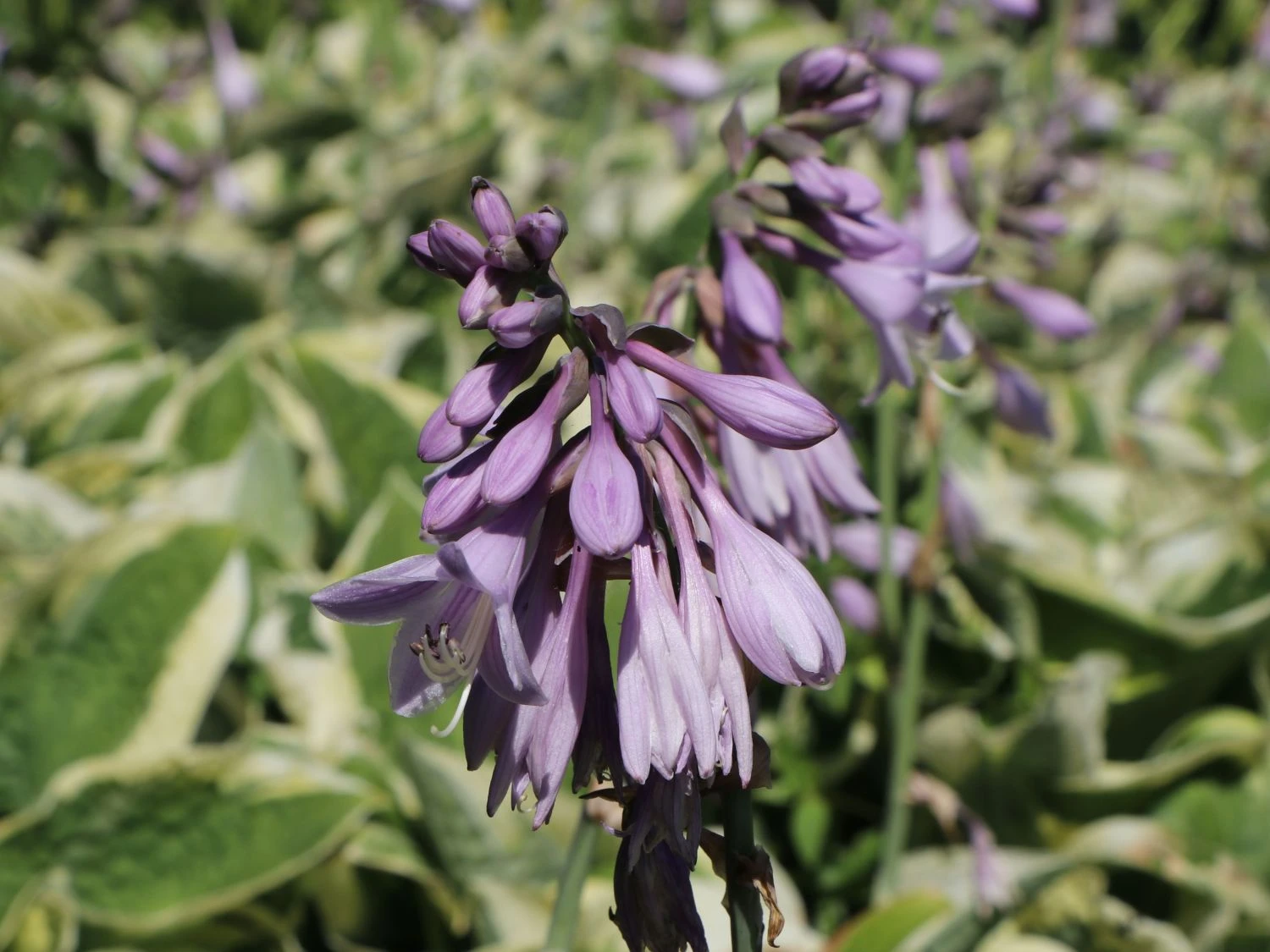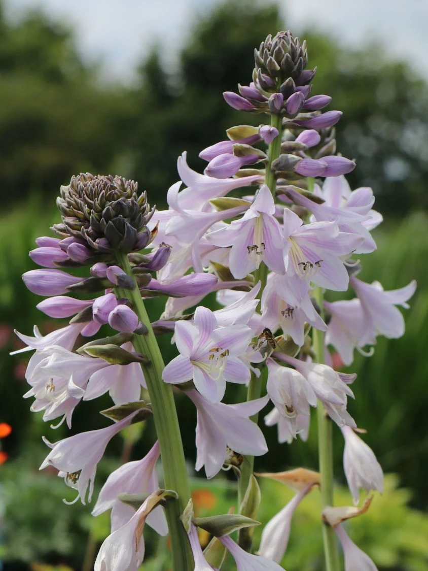 Neben der zweifarbigen Kolorierung, die die Blätter der Hosta sieboldiana ‚Wide Brim‘ so interessant und sehenswert macht, ist jedes Blatt am Rand leicht gewellt. Dies verleiht der Staude zusätzlich einen dekorativen Charakter, mit dem sie attraktiv auffällt. Grundsätzlich kommt die Hosta sieboldiana ‚Wide Brim‘ im Garten aufgrund ihres wunderschönen Blattschmucks zum bemerkenswerten Einsatz. Mit der außergewöhnlichen Blüte, die die Funkie präsentiert, scheint nicht jeder zu rechnen. Schön, wenn die Funkie damit den Pflanzenfreund überrascht. Die Blütezeit ist durch den Juni und Juli. Die Blüten setzen sich aus kleinen, hell-violetten Trichtern zusammen. In einem großen, traubenartigen Blütenstand sitzen dieser Trichter beisammen. Sie ergeben einen außergewöhnlichen und attraktiven Eindruck.