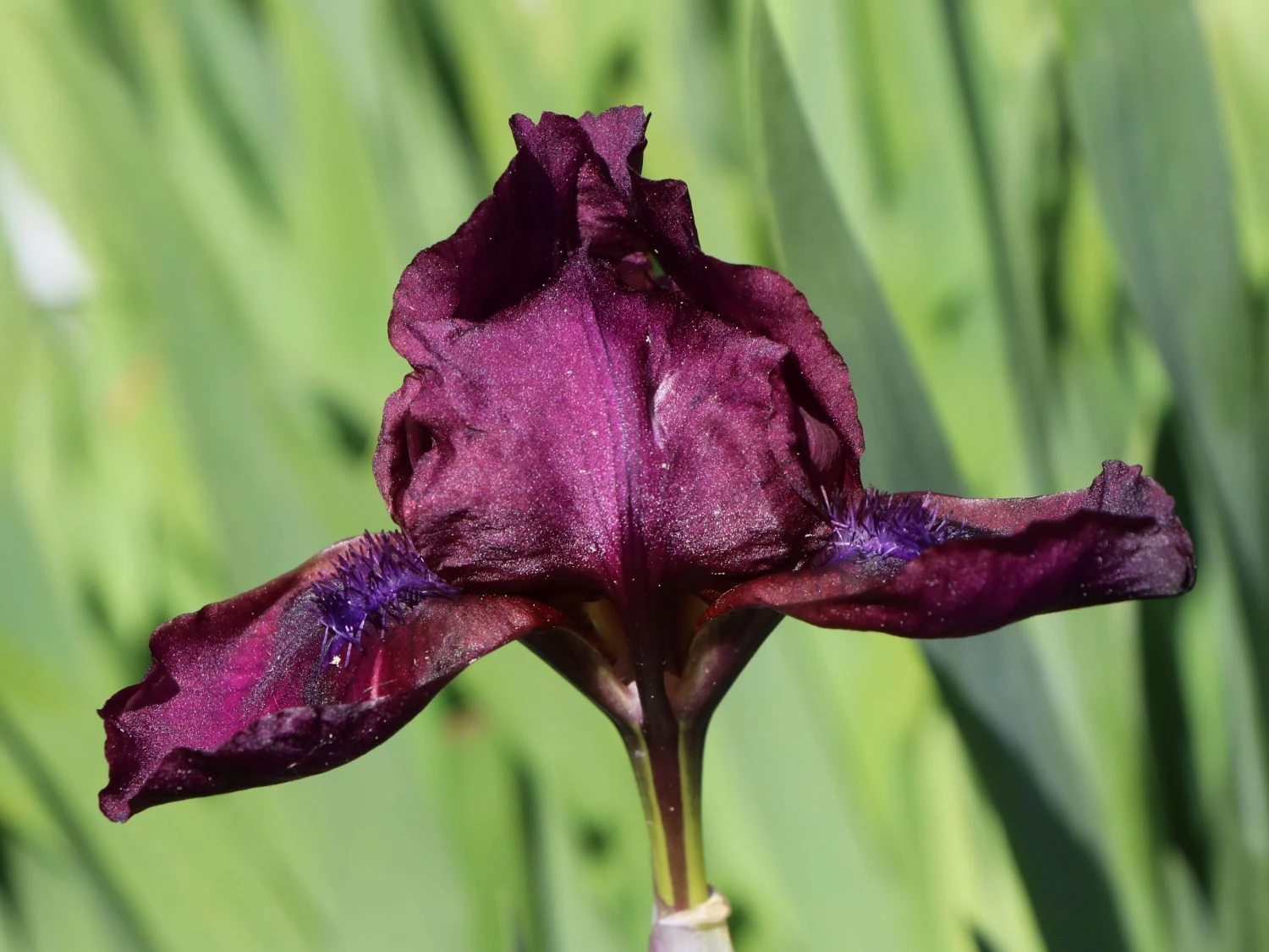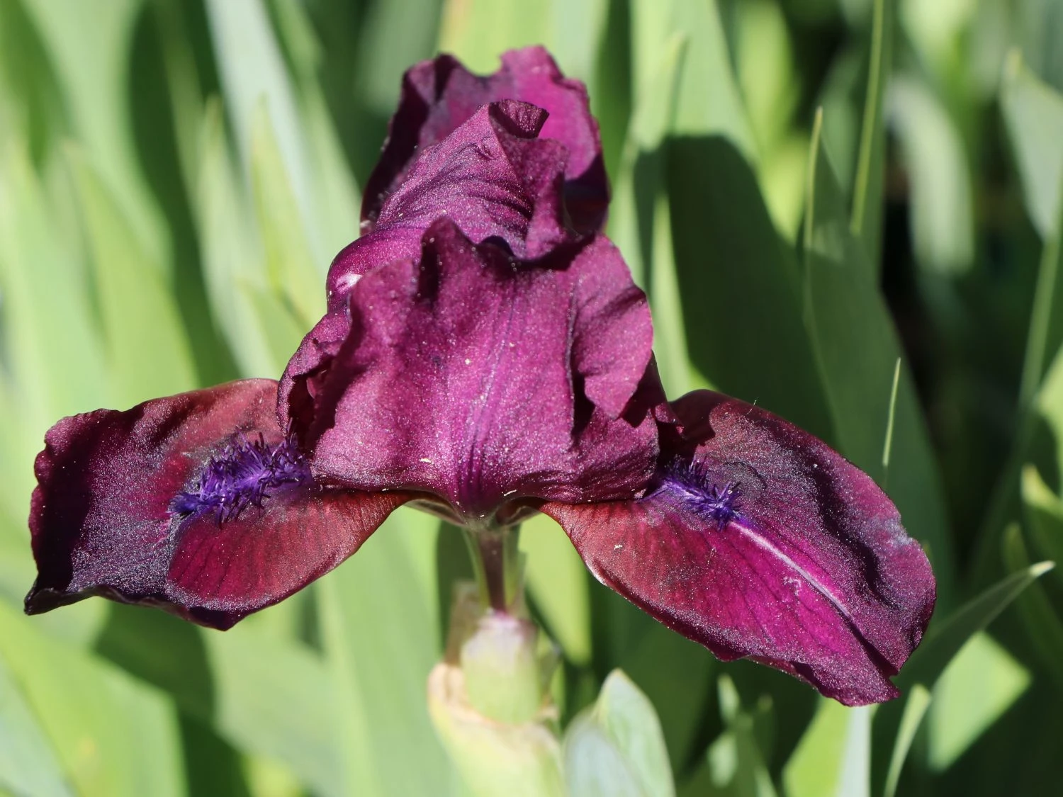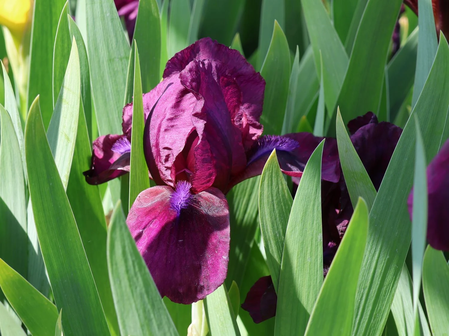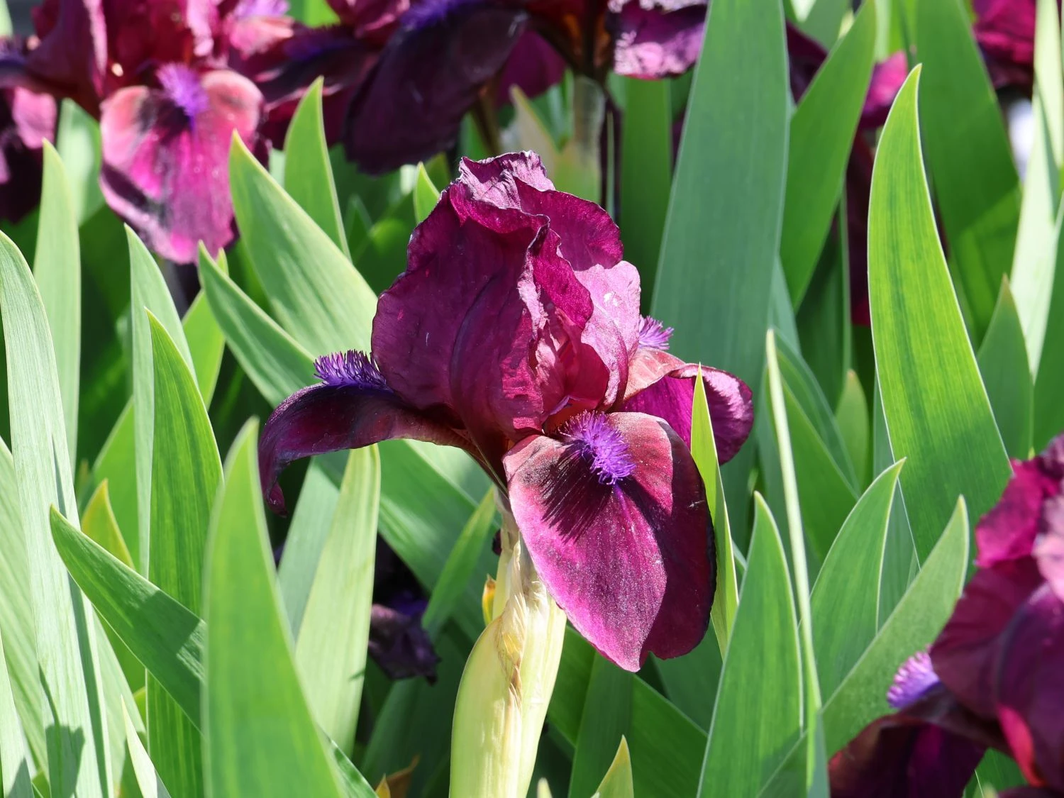 Ein tief-purpur Blütentraum! In der Zeit von April bis Mai erscheinen die wunderschönen tief-purpurnen Blüten der Zwergigen Schwertlilie ‚Cherry Garden‘. Aus ihrem grundständigen Blattschopf streben die geraden, aufrechten, kräftigen Stängel der Sonne entgegen. Sie erreichen eine Höhe von circa 30 Zentimetern. Die (bot.) Iris x barbata-nana ‚Cherry Garden‘ gehört zur Pflanzengruppe der Stauden. Sie verzaubert den Gärtner mit ihrem robusten Wesen und einer eindrucksvollen, tief-purpur Blüte. Die Blüten verströmen einen zarten Duft. Dieses zauberhafte Gewächs ist an optimalen Standorten mit den geringsten Pflegemaßnahmen zufrieden. Ohne irgendwelche Ansprüche an den Gärtner zu stellen, überzieht sie den Garten mit einem wunderschönen Meer aus Blüten. Die einzelnen Blüten sind zweikreisig. Sie bestehen aus den wunderschönsten tief-purpur Dom- und Hängeblättern.