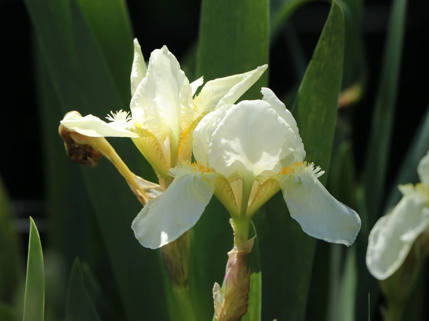Die Glanzzeit der Iris x barbata-nana ‚Die Braut‘ ist im Frühjahr von April bis Mai. Um Ostern herum, erfreut sie uns mit schöner Blüte. Außerhalb ihrer Blütezeit ist die Zwerg-Schwertlilie ‚Die Braut‘ ebenfalls eine wahre Wohltat. Die schwertförmigen, zugespitzten Blätter der Staude bilden vertikale Linien innerhalb einer Pflanzengruppe. Durch die grüne Färbung der Blätter, ist sie ohne ihre Blüten absolut sehenswert. Iris x barbata-nana ‚Die Braut‘ bildet dicke Rhizome. Daraus wachsen neue Triebe an die Erdoberfläche. Eine einfache Vermehrung dieser Staude ist gewährleistet. Zu ihren weiteren Vorzügen zählt, dass sie winterhart und frostunempfindlich ist und keinen Winterschutz benötigt. Wer seiner Zwerg-Schwertlilie ‚Die Braut‘ trotz dieser Vorzüge Schutz zukommen lässt, deckt sie über die kalten Monate mit Tannenzweigen ab. Im nächsten Frühjahr erfreut sie den Gartenfreund erneut mit voller Blüte.
